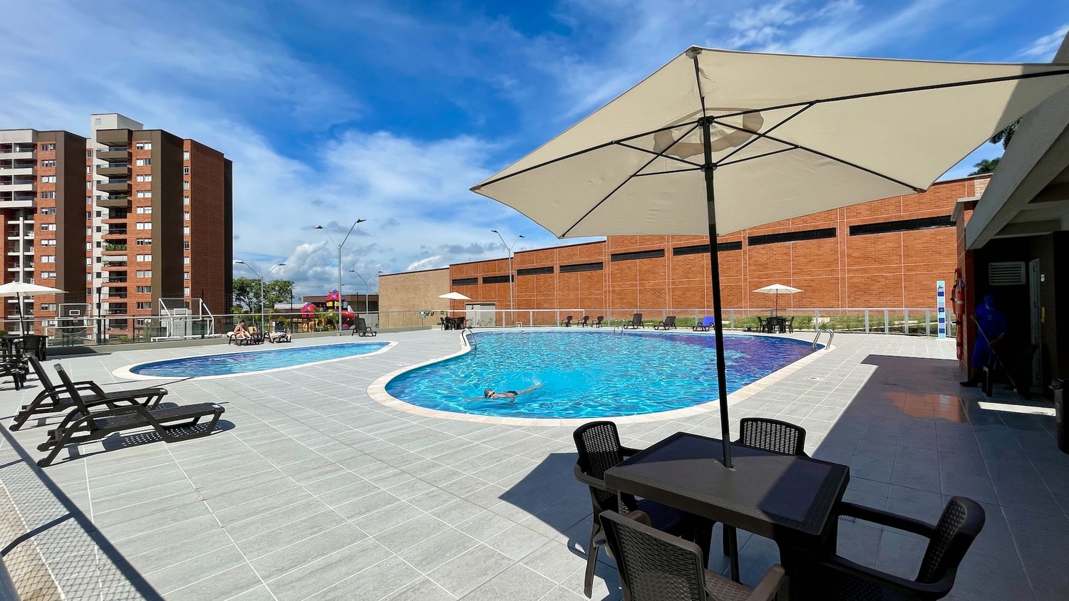 El conjunto residencial cuenta con piscina, sauna, turco, jacuzzi, salón social y senderos ecologicos. En este momento esta habilitado el parque y zonas verdes.