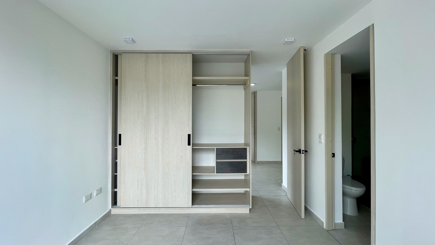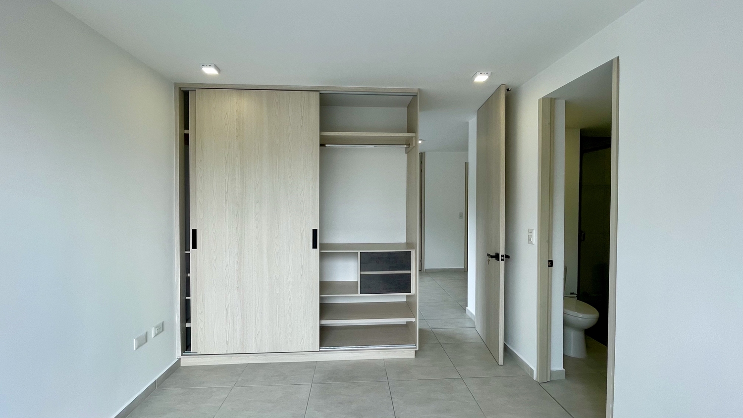 Alcoba principal con closet y baño