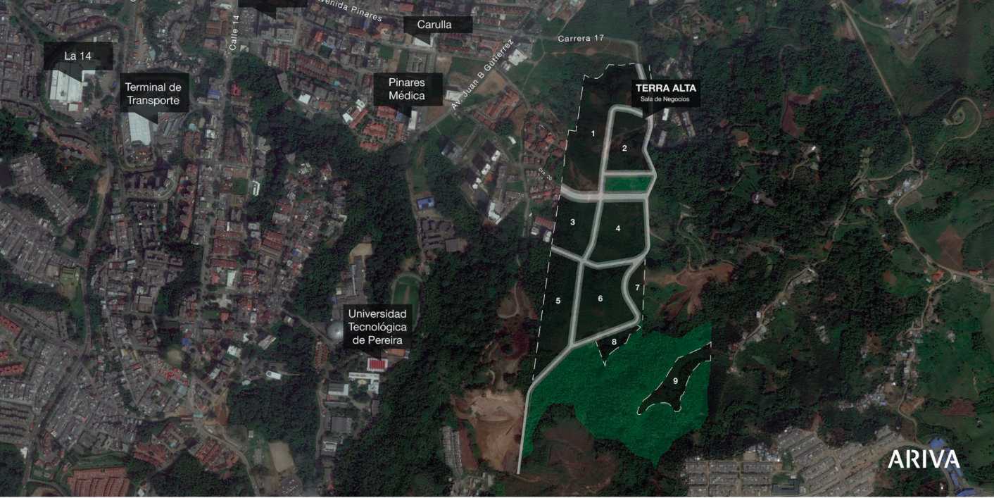 Ubicada en el cerro El Mirador, al oriente de la ciudad de Pereira, se encuentra Terra Alta, una ciudad contemporánea. Terra Alta se extiende por más de 288.000 metros cuadrados. De estos, 109.000 corresponden a parques con áreas de recreación, cultura, deportes, servicios y bosques naturales. Este nuevo barrio en la ciudad cuenta con amplias vías, un eje comercial de doble calzada vehicular, servicios y redes de infraestructura subterráneos, mayor número de parqueaderos, zonas verdes arborizadas con especies nativas y vistas inigualables sobre la ciudad de Pereira y sus alrededores.