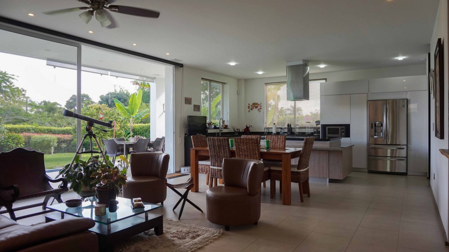 En Cerritos en el ya reconocido condominio Maracay Ciudad Campestre se encuentra esta extraordinaria propiedad de un solo nivel y de estilo contemporáneo que sobresale por su elegantes acabados, distribución e iluminación. La propiedad se rodea de amplia zona verde, guaduales, flores y una zona social conformada por terraza y Jacuzzi.