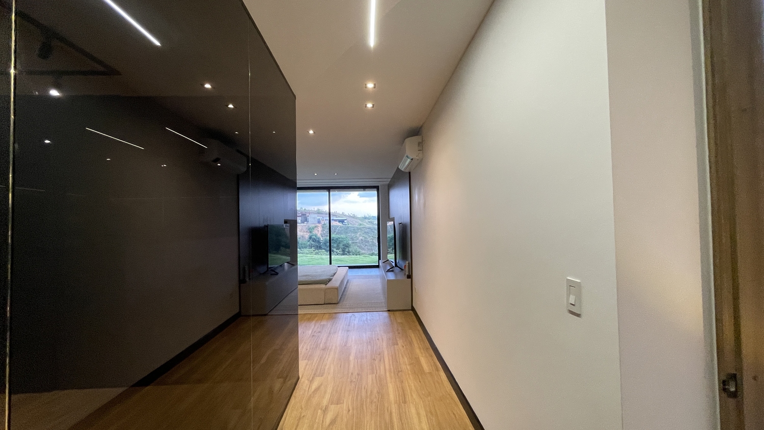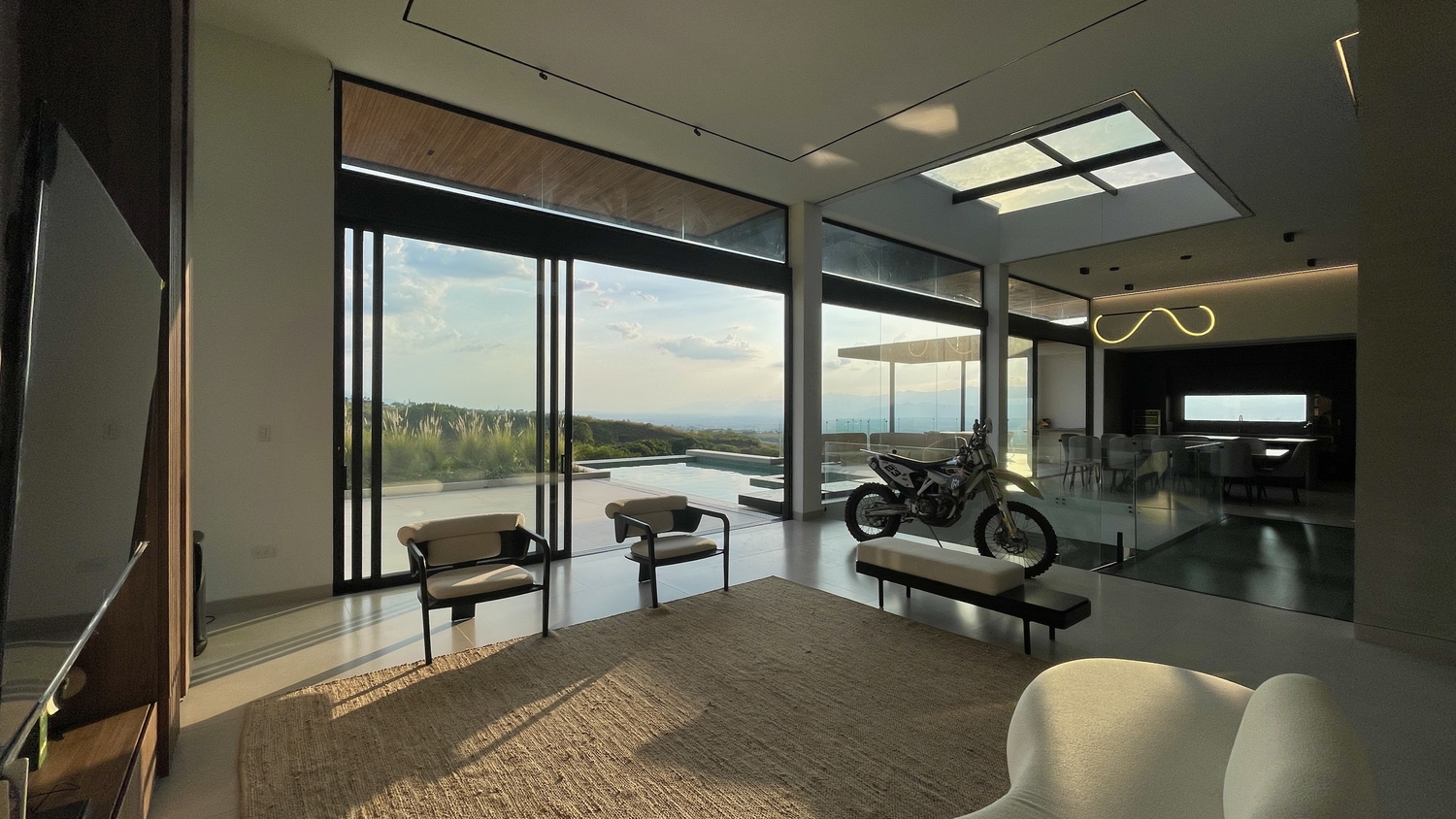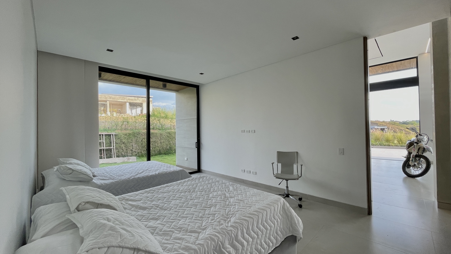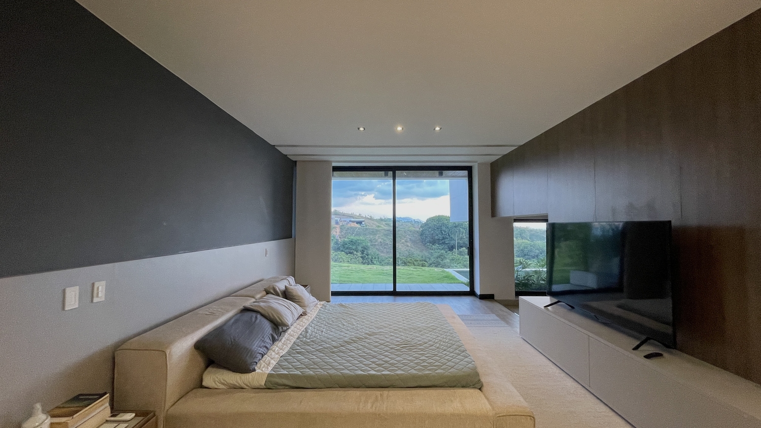 En Cerritos en Condominio Campestre se encuentra esta majestuosa casa campestre de estilo contemporáneo que sobresale por su gran diseño, grandes espacios, elegantes acabados, distribución e iluminación interior y exterior. La propiedad se rodea de amplia zona verde y una zona húmeda conformada por terrazas, piscina, jacuzzi, con una vista excepcional a las montañas