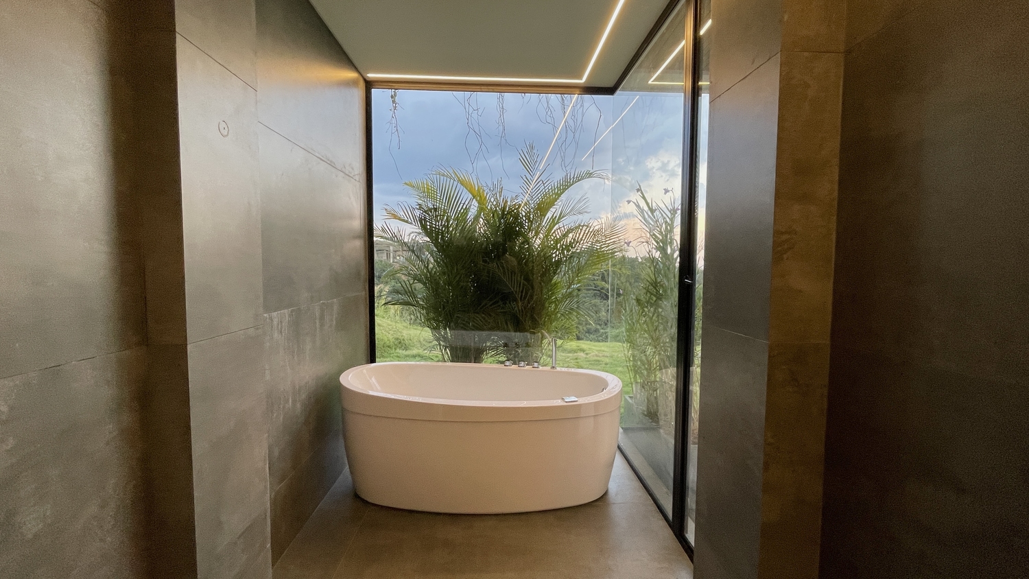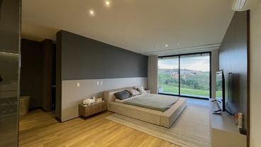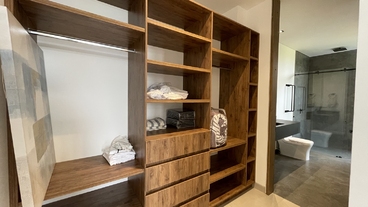 Habitación principal con walk in closet, baño con tina, chill out, cuarto util