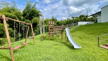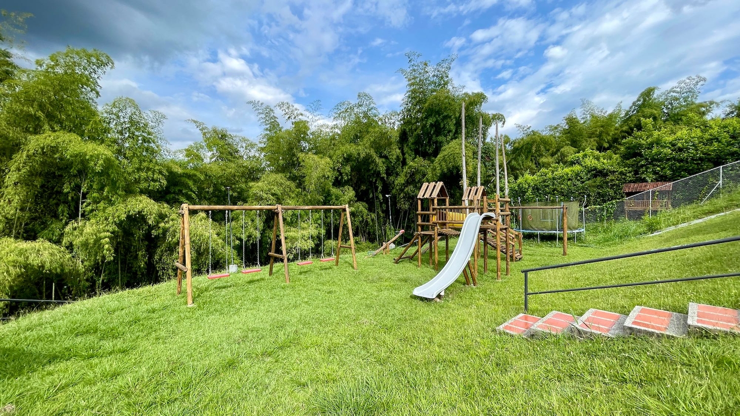 La vivienda tiene una zona social conformada por un parque infantil, senderos, un pozo de los deseos y sillas para disfrutar de las zonas verdes.