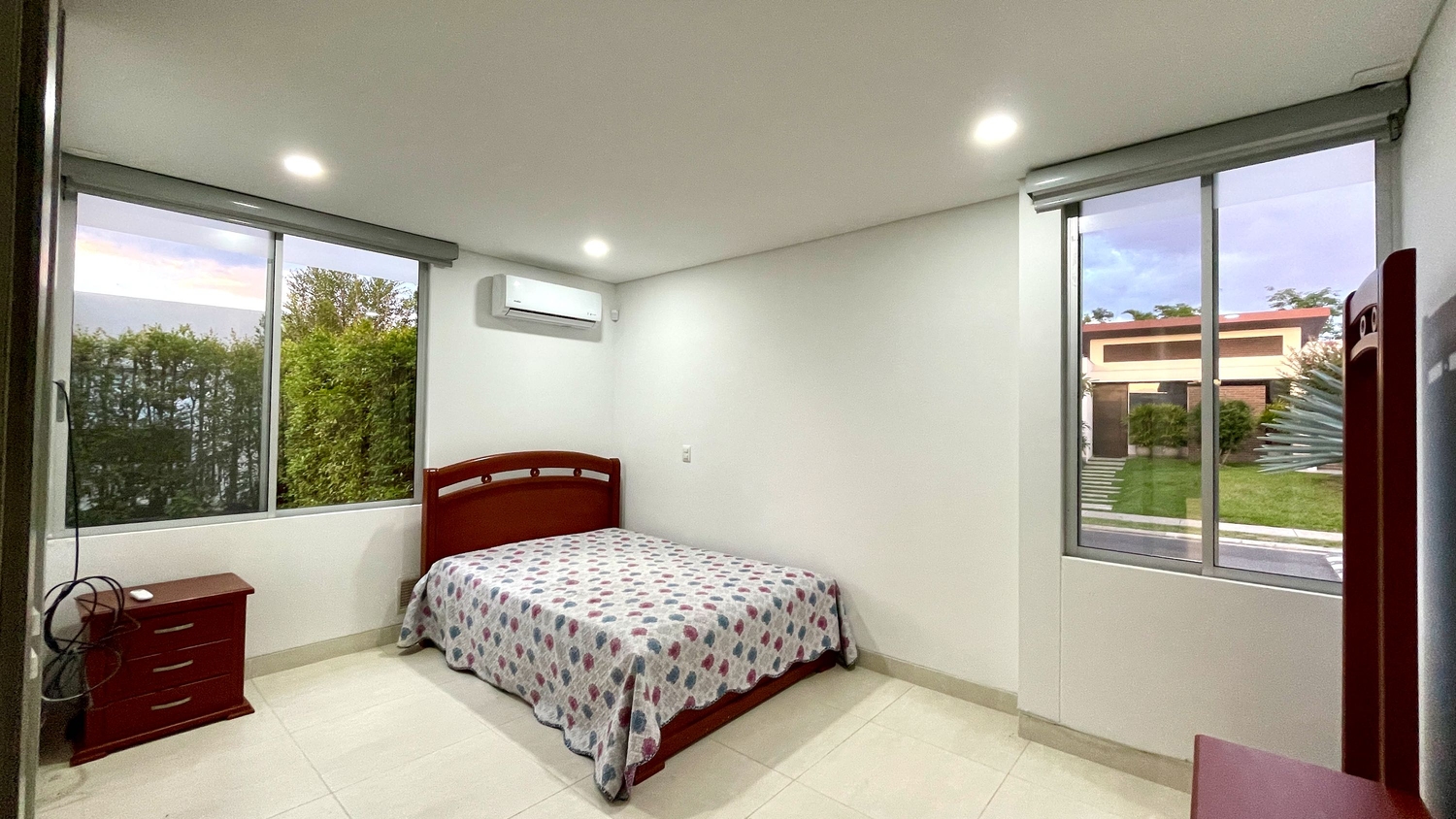 En Cerritos en condominio campestre encontramos esta magnífica casa que se destaca por su diseño arquitectónico contemporáneo y por su gran terreno de 1500 m2 totalmente privado y plano. La propiedad diseñada para aprovechar su entorno natural se conforma por espacios amplios y abiertos.