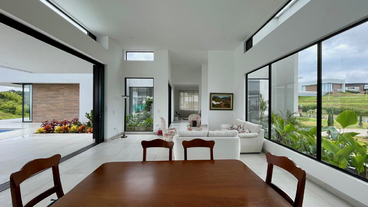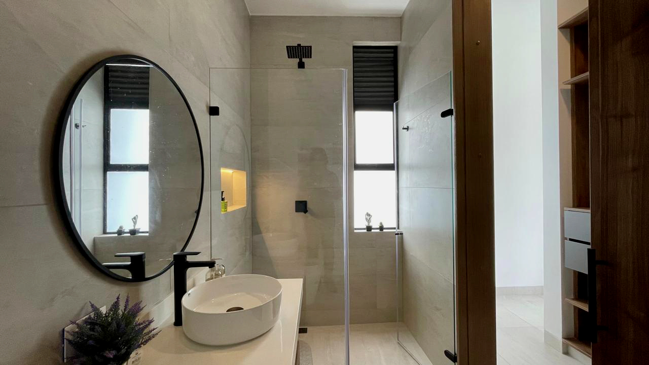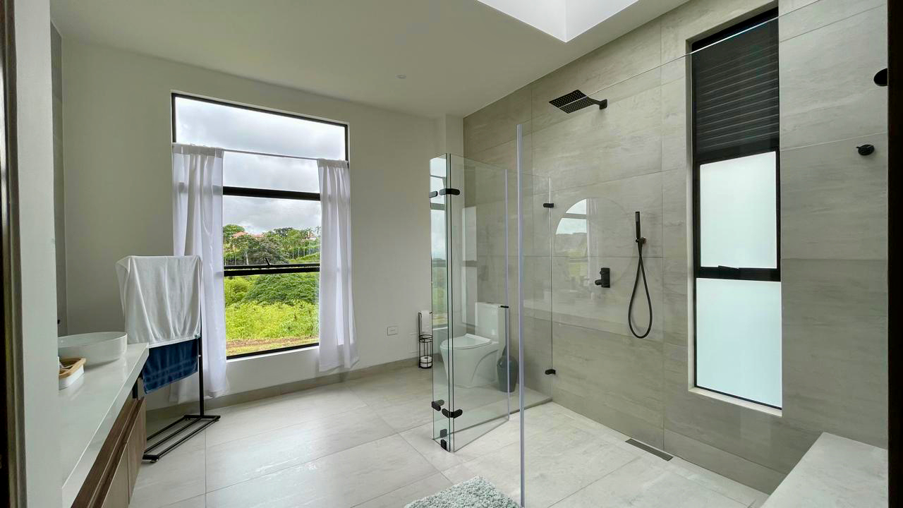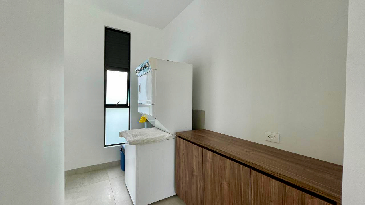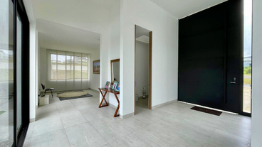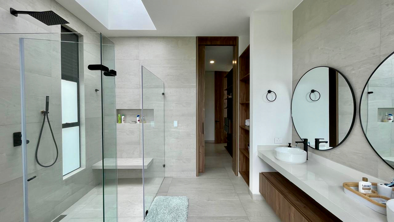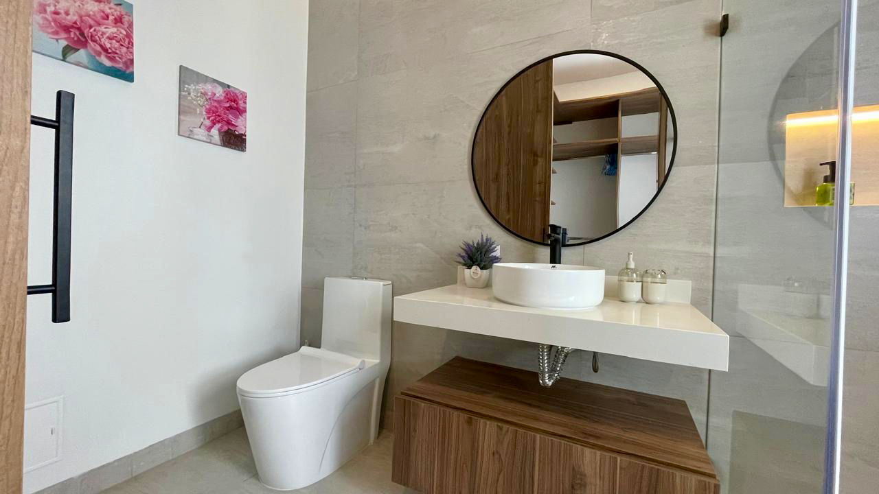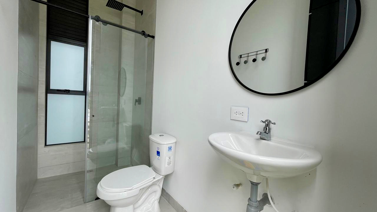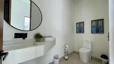 Un baño social de estilo moderno y sofisticado para la comodidad de los invitados. Además la casa cuenta con un sistema de domótica avanzada, controlando luces y cámaras de seguridad para una experiencia de vida inteligente y segura.