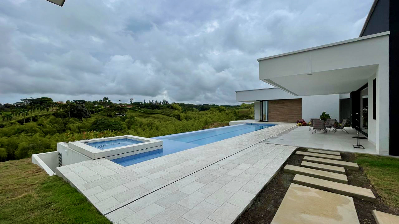 En el exterior se cuenta con una hermosa piscina, iluminada para ofrecer un ambiente encantador tanto de día como de noche, se convierte en el punto focal de los espacios al aire libre.