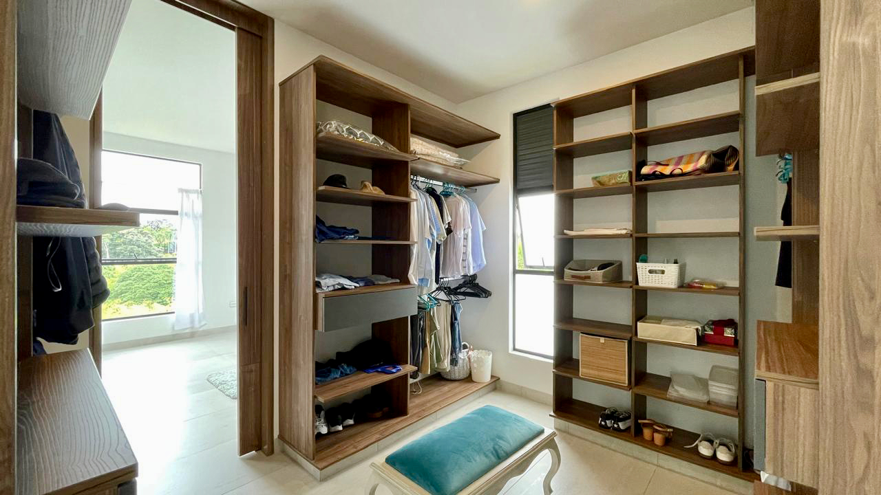 En el interior, la casa tiene tres amplias alcobas, cada una con vestier para mayor comodidad y organización. Además, una alcoba de servicio con baño independiente.