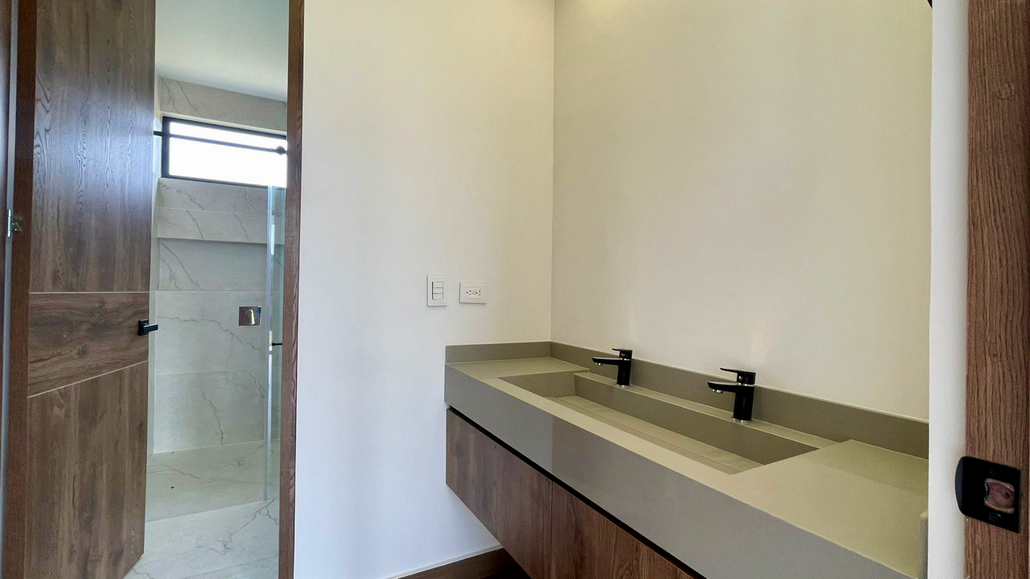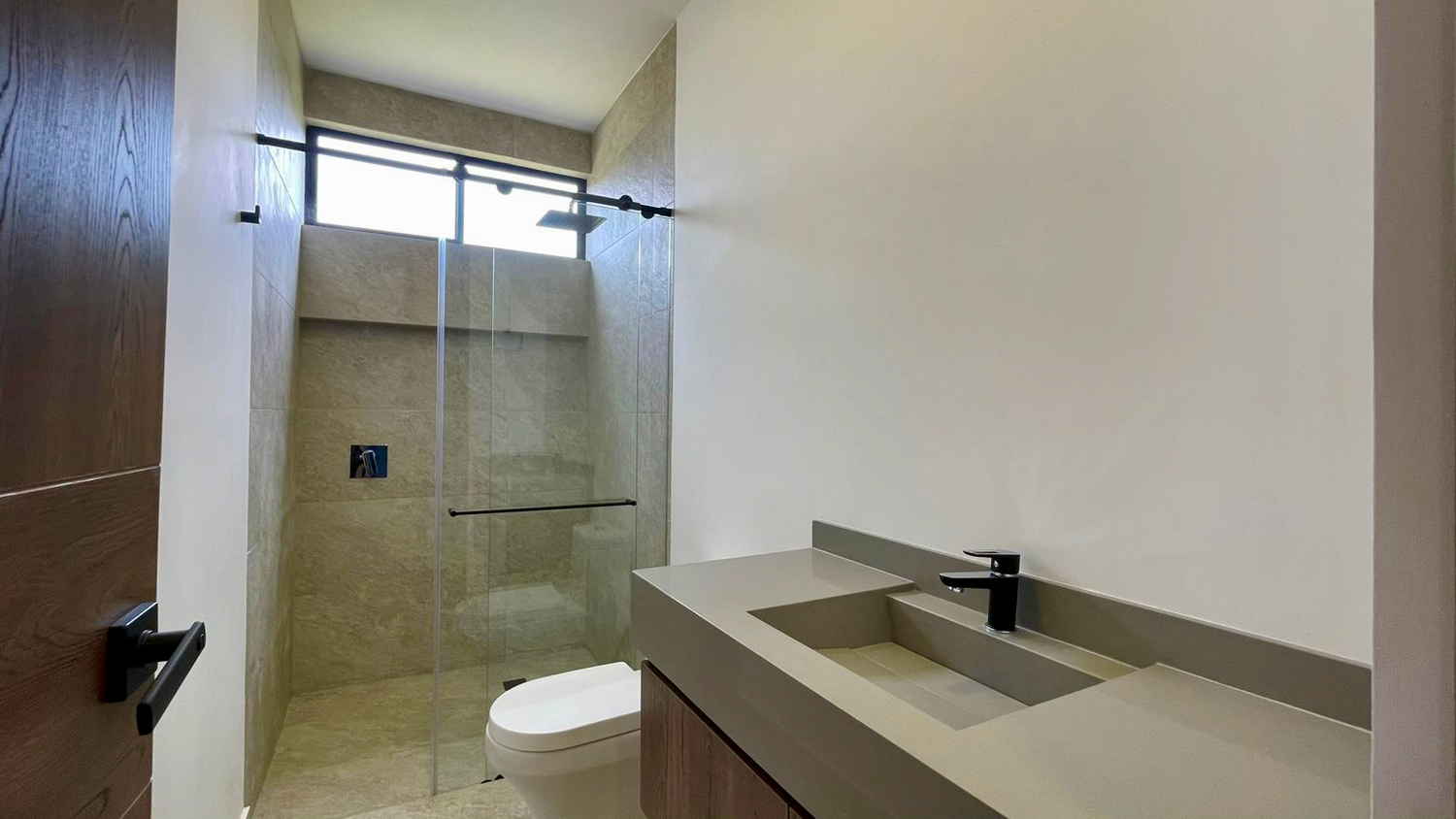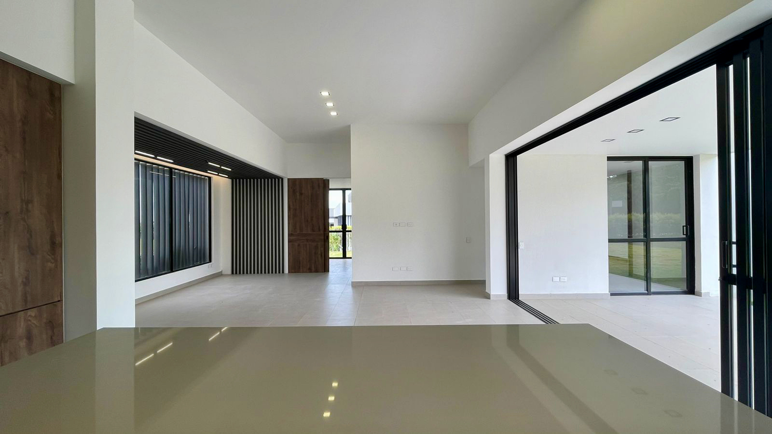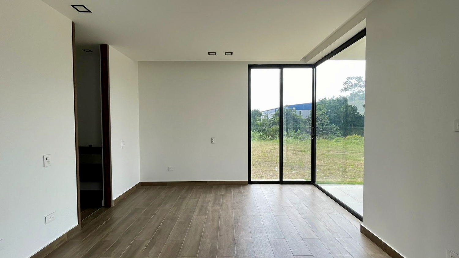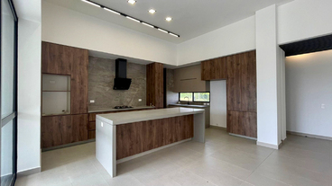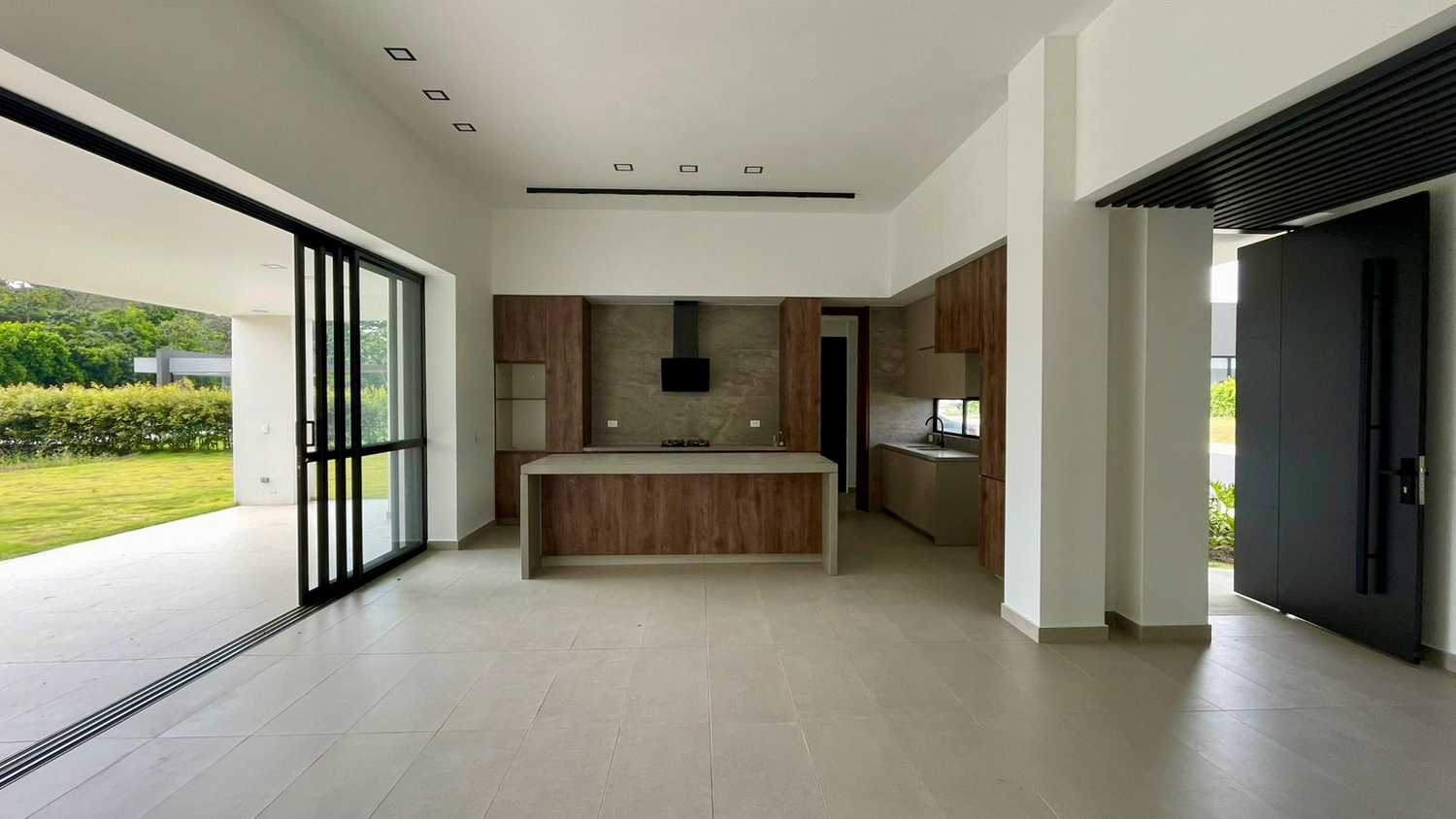 La sala y el comedor se integran armoniosamente con una gran terraza cubierta, creando un espacio perfecto para disfrutar del paisaje que envuelve el hogar. La cocina abierta, equipada con una amplia isla y espacios de trabajo independientes, se destaca por sus acabados modernos y funcionalidad. Un baño social que está estratégicamente ubicado para mayor comodidad, y la zona de ropa es espaciosa y bien distribuida.
