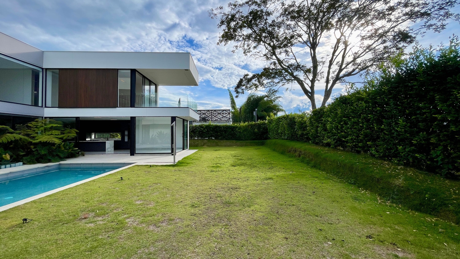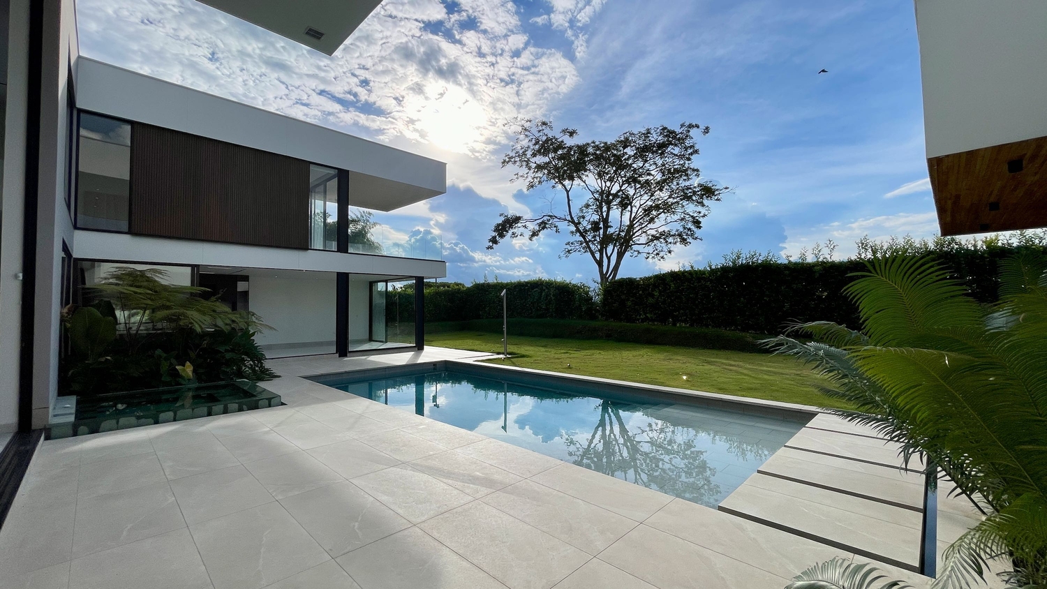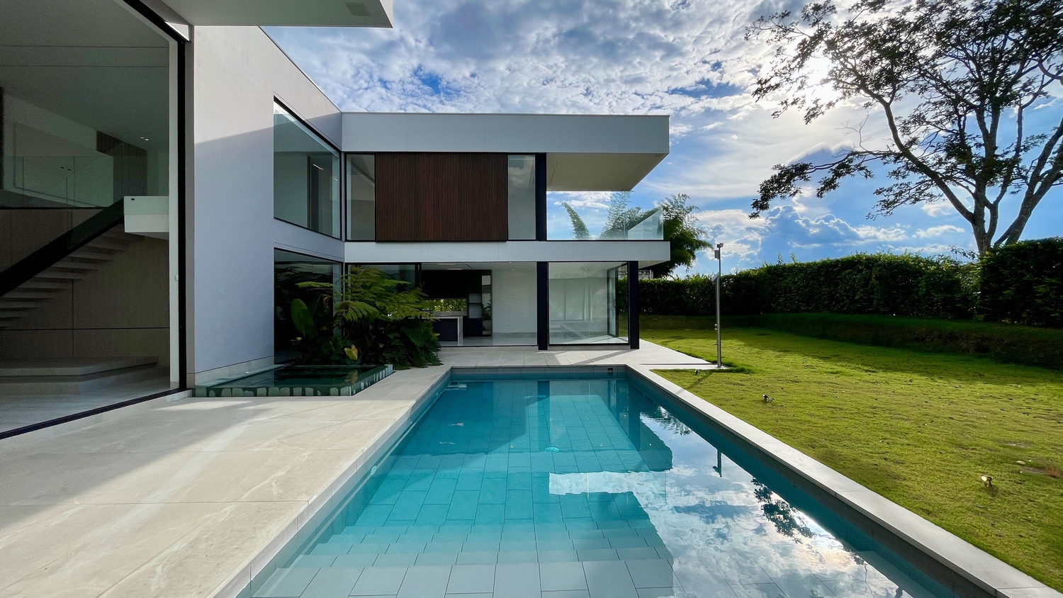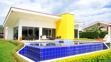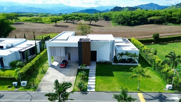 En Malabar Condominio Campestre - Cerritos se encuentra esta extraordinaria casa campestre de estilo contemporáneo y minimalista que sobresale por su gran diseño arquitectónico, amplios espacios, elegantes acabados, distribución e iluminación interior y exterior y por su gran vista a las montañas. La propiedad se rodea de amplia zona verde enfocada al Guadual, a las montañas y una zona social conformada por terrazas y piscina.