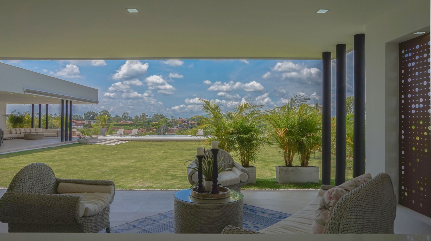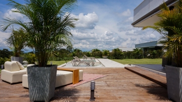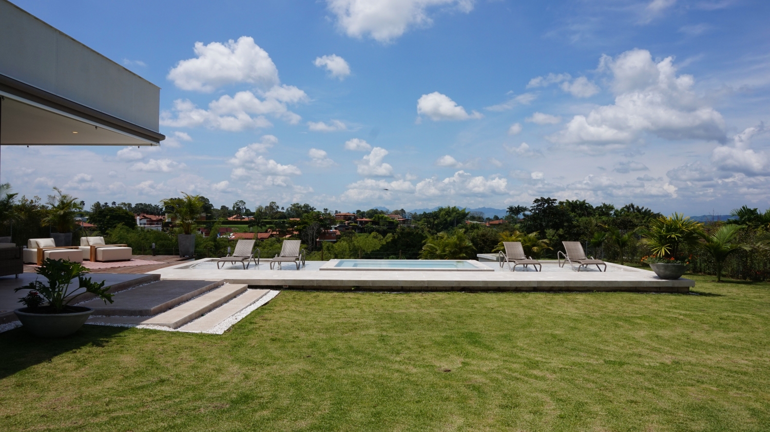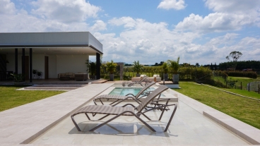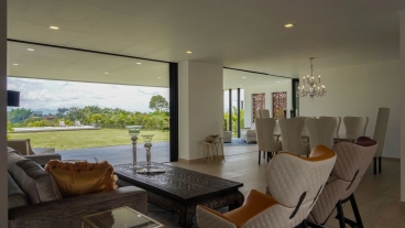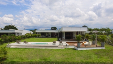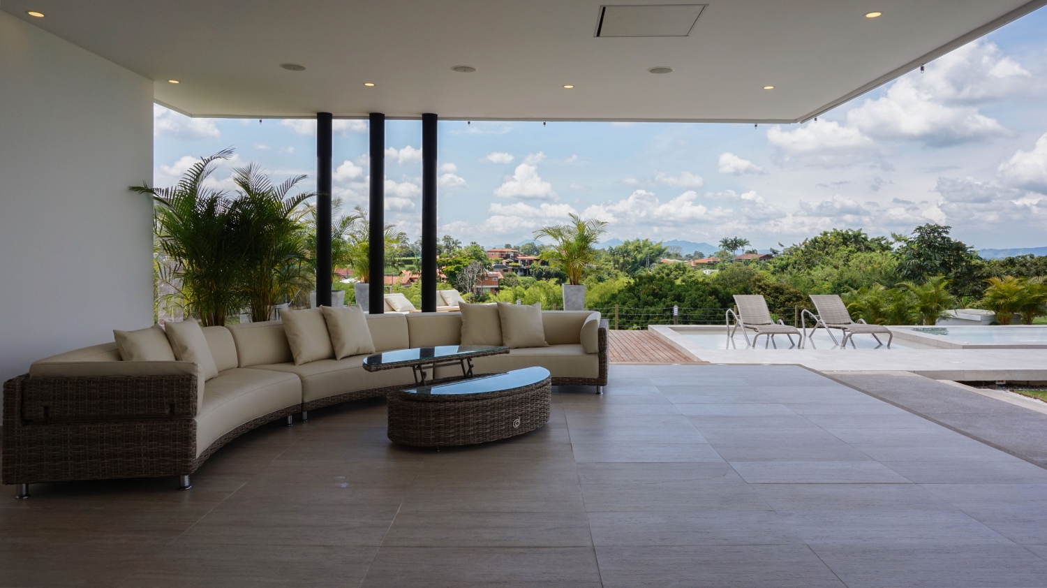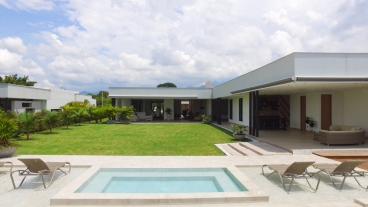 En San Jose de las Villas Etapa 5 - Pueblito Cafetero se encuentra esta extraordinaria propiedad amoblada de estilo contemporáneo de un solo nivel que sobresale por su gran diseño arquitectónico, amplios espacios, elegantes acabados, distribución e iluminación interior y exterior. La propiedad se rodea de amplia zona verde, flores y una zona social conformada por terrazas y jacuzzi con vista a las espectaculares montañas y fincas del eje cafetero