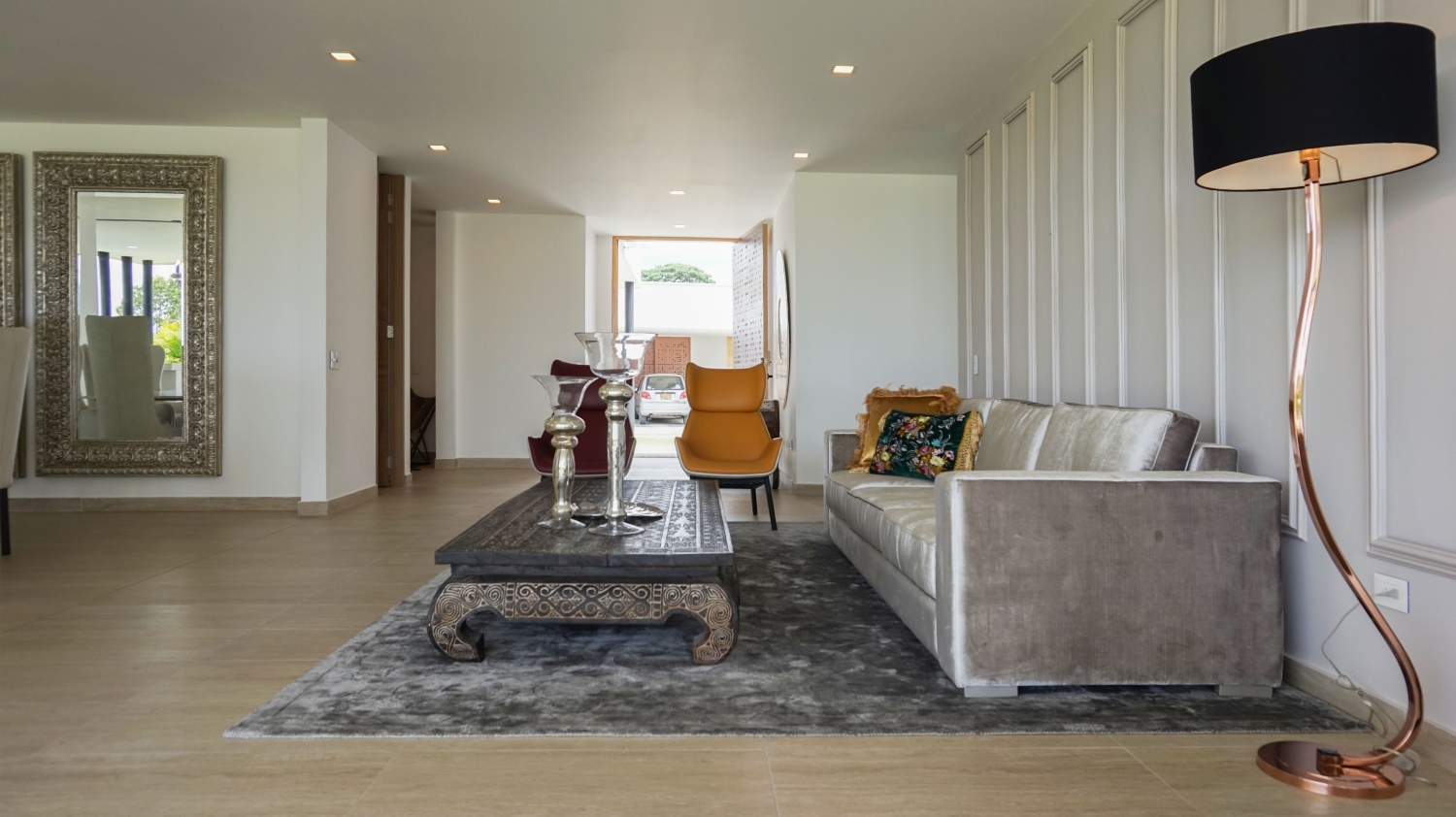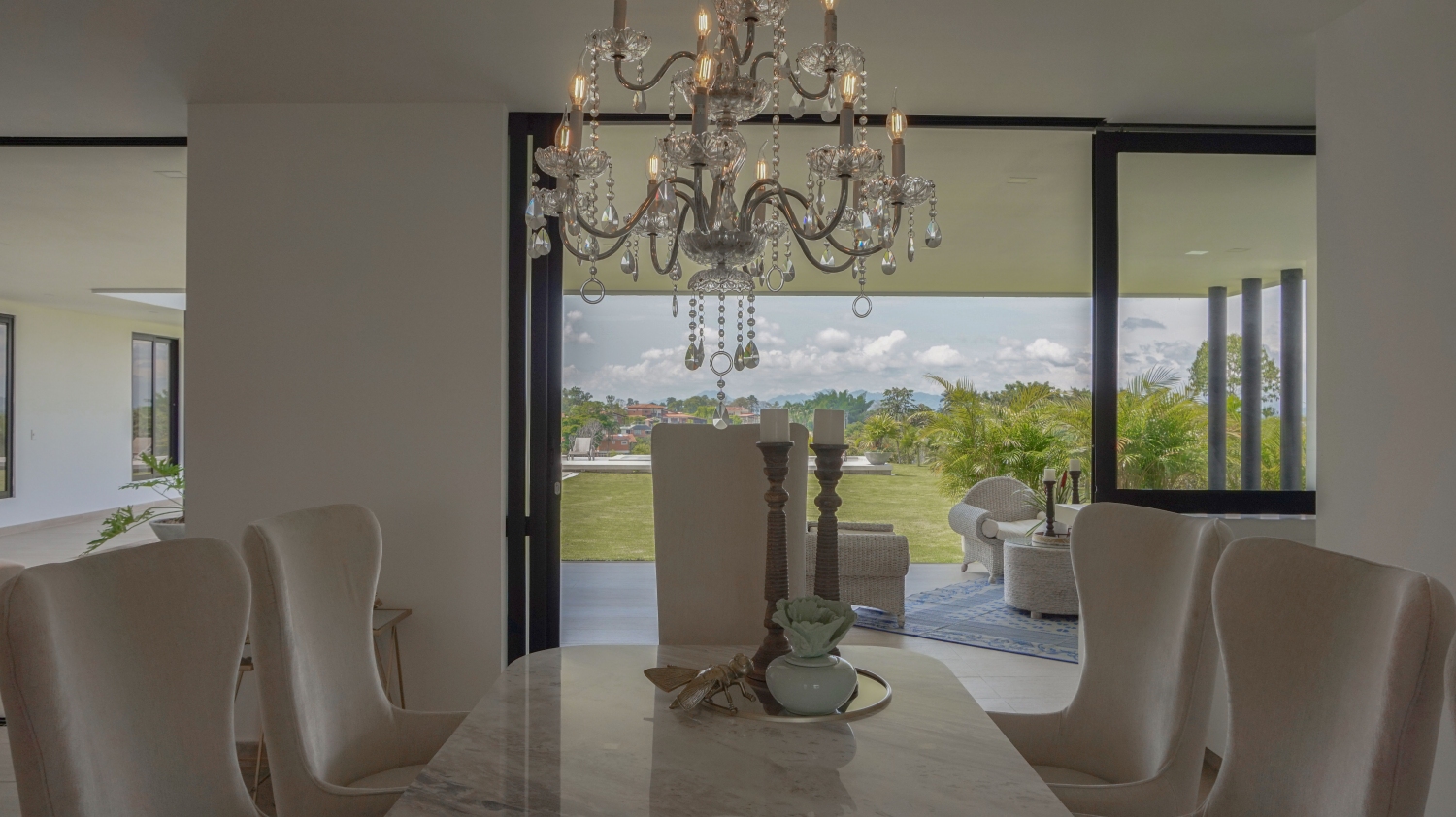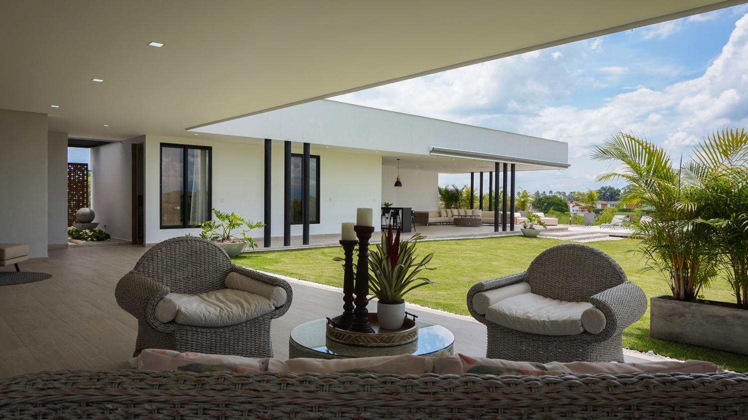 En San Jose de las Villas Etapa 5 - Pueblito Cafetero se encuentra esta extraordinaria propiedad amoblada de estilo contemporáneo de un solo nivel que sobresale por su gran diseño arquitectónico, amplios espacios, elegantes acabados, distribución e iluminación interior y exterior. La propiedad se rodea de amplia zona verde, flores y una zona social conformada por terrazas y jacuzzi con vista a las espectaculares montañas y fincas del eje cafetero