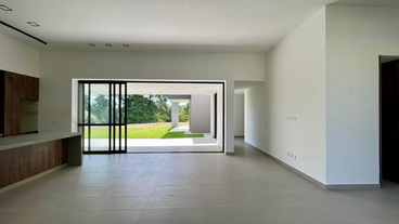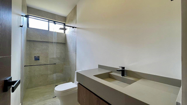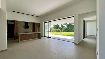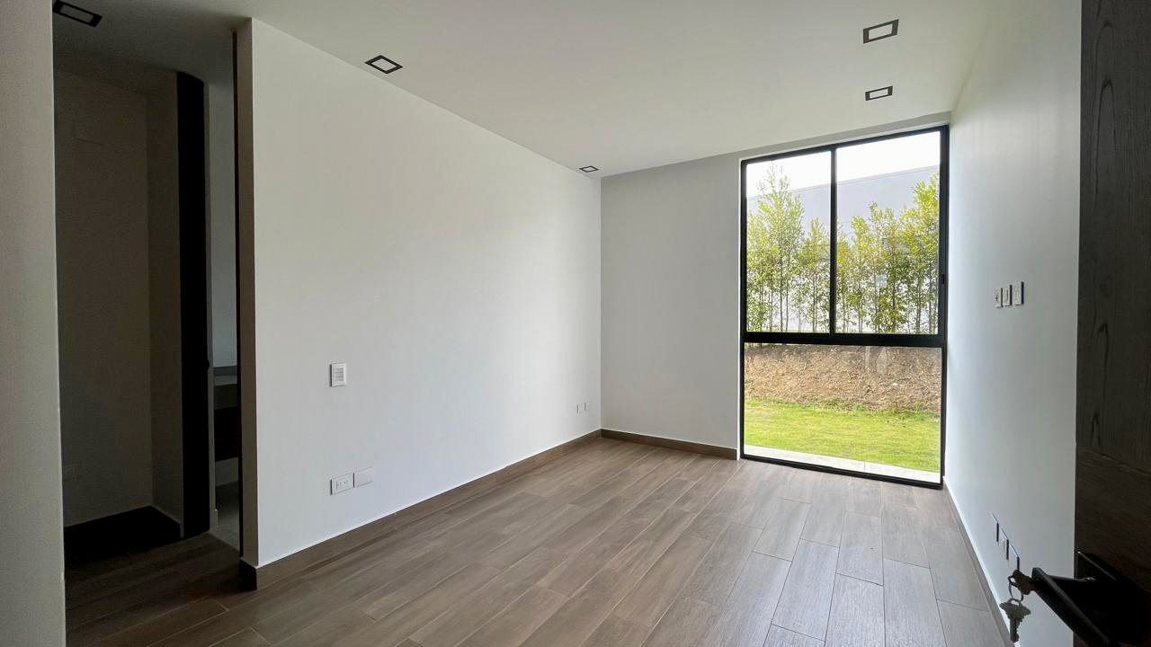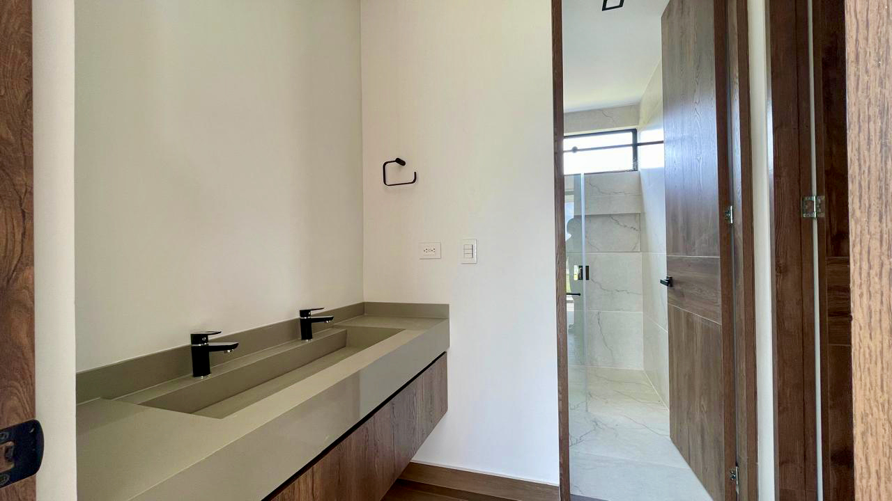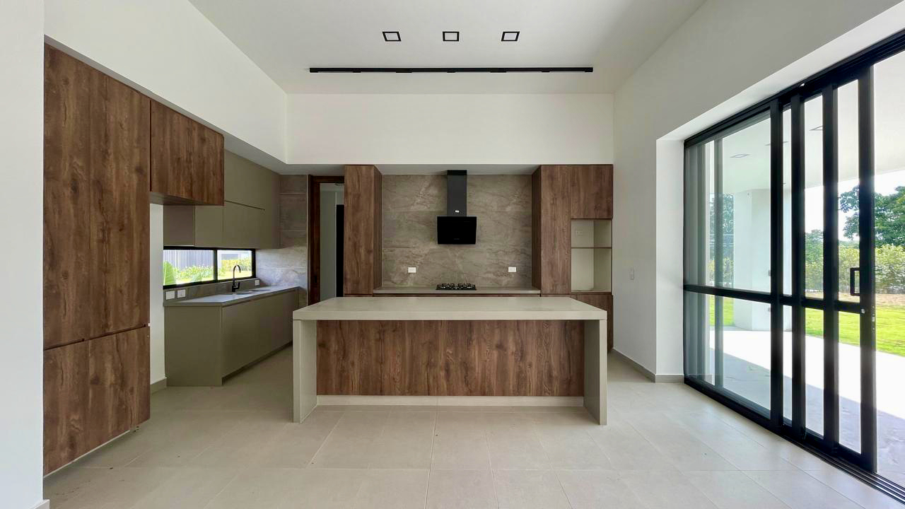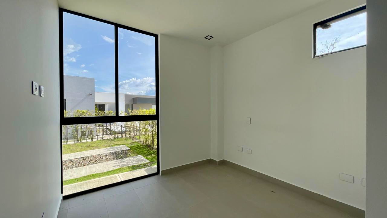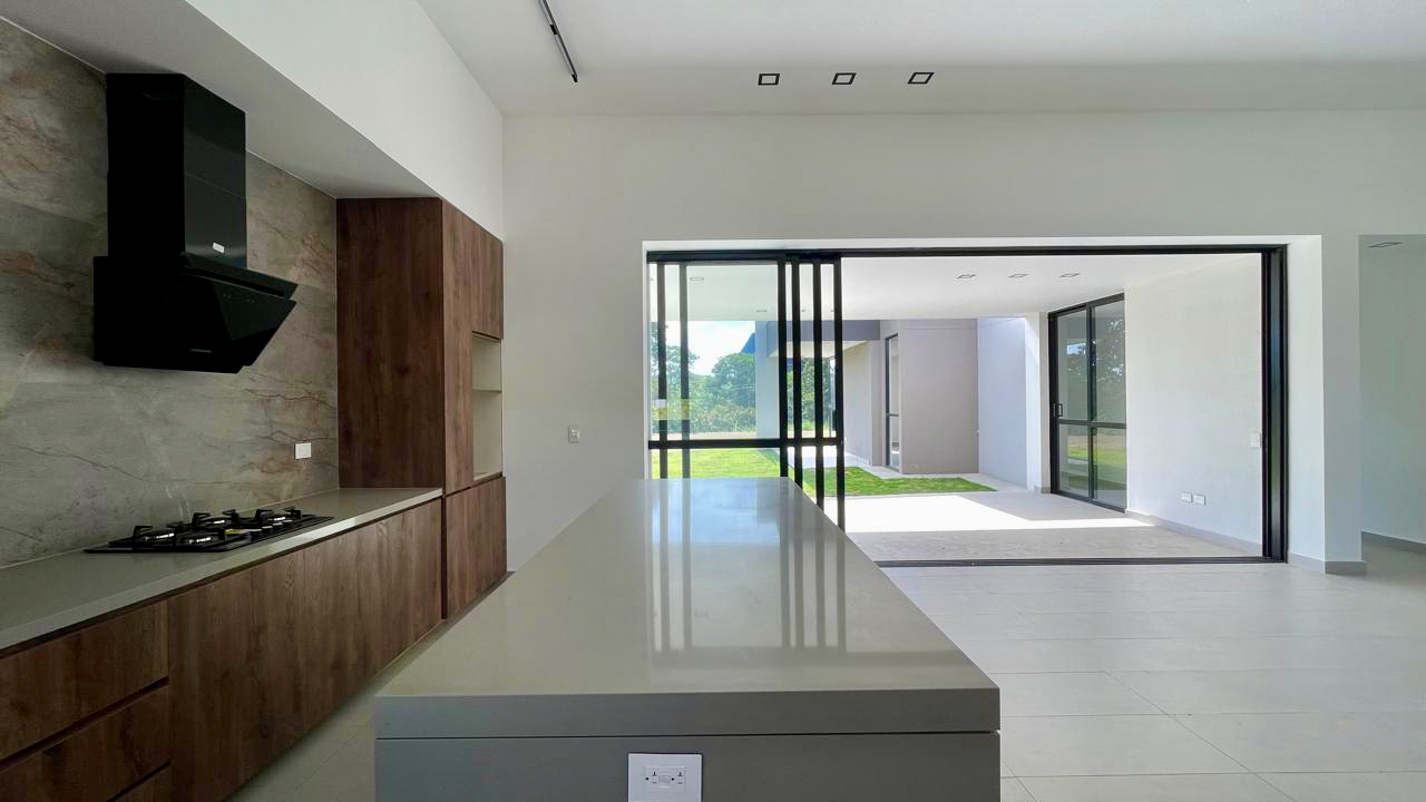 La sala y el comedor se integran armoniosamente con una gran terraza cubierta, creando un espacio perfecto para disfrutar del paisaje que envuelve el hogar. La cocina abierta, equipada con una amplia isla y espacios de trabajo independientes, se destaca por sus acabados modernos y funcionalidad. Un baño social que está estratégicamente ubicado para mayor comodidad, y la zona de ropa es espaciosa y bien distribuida.