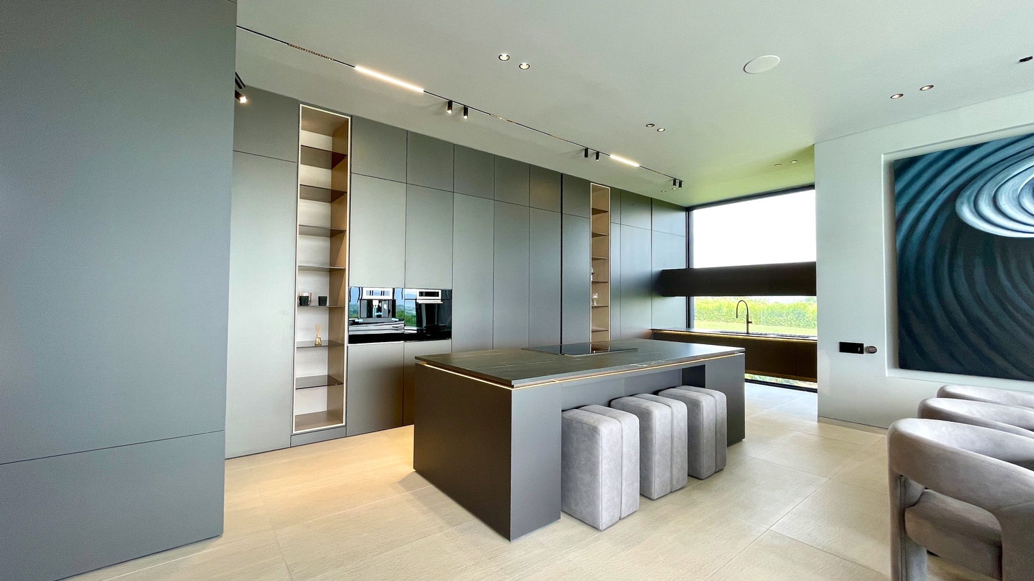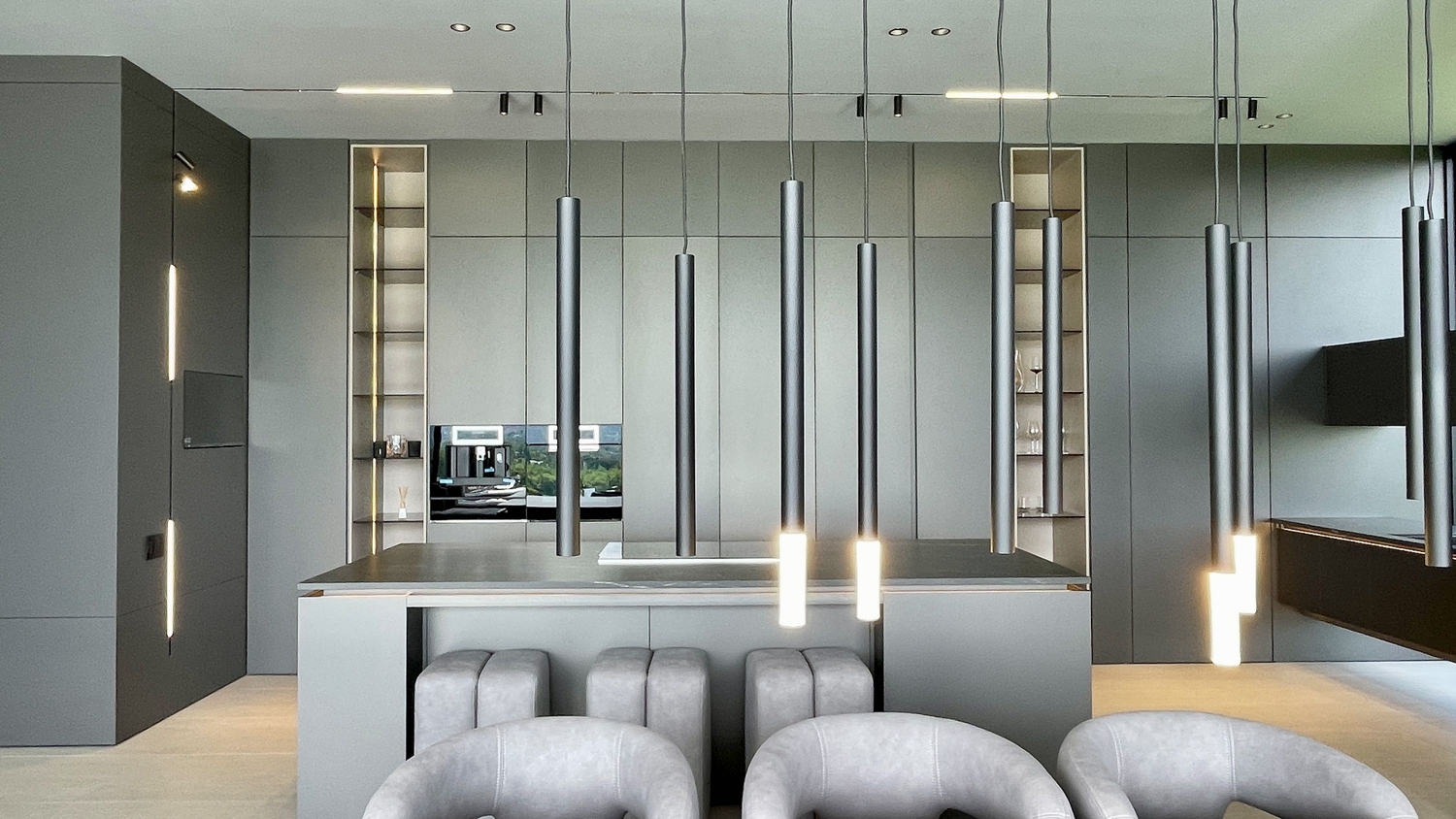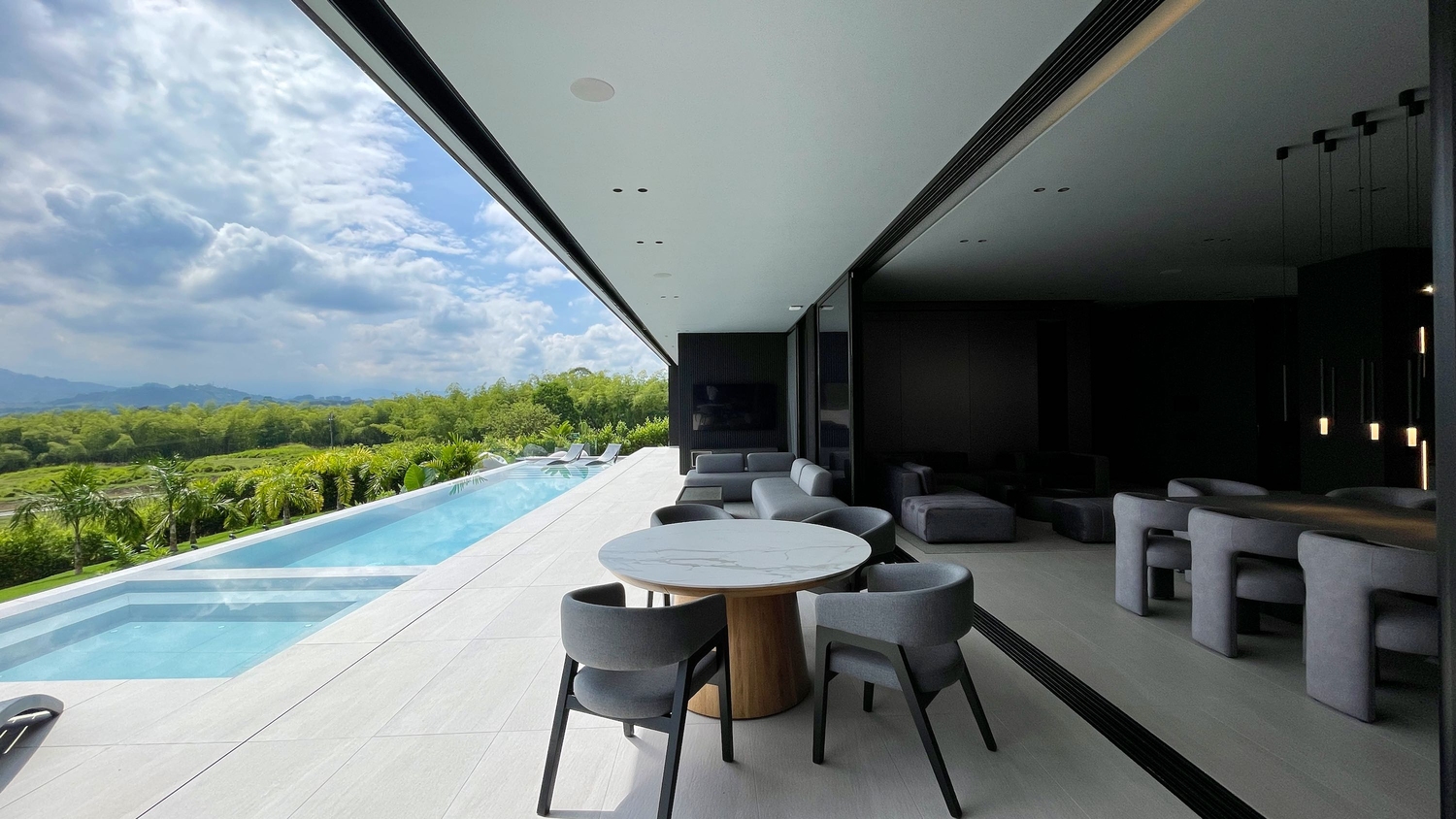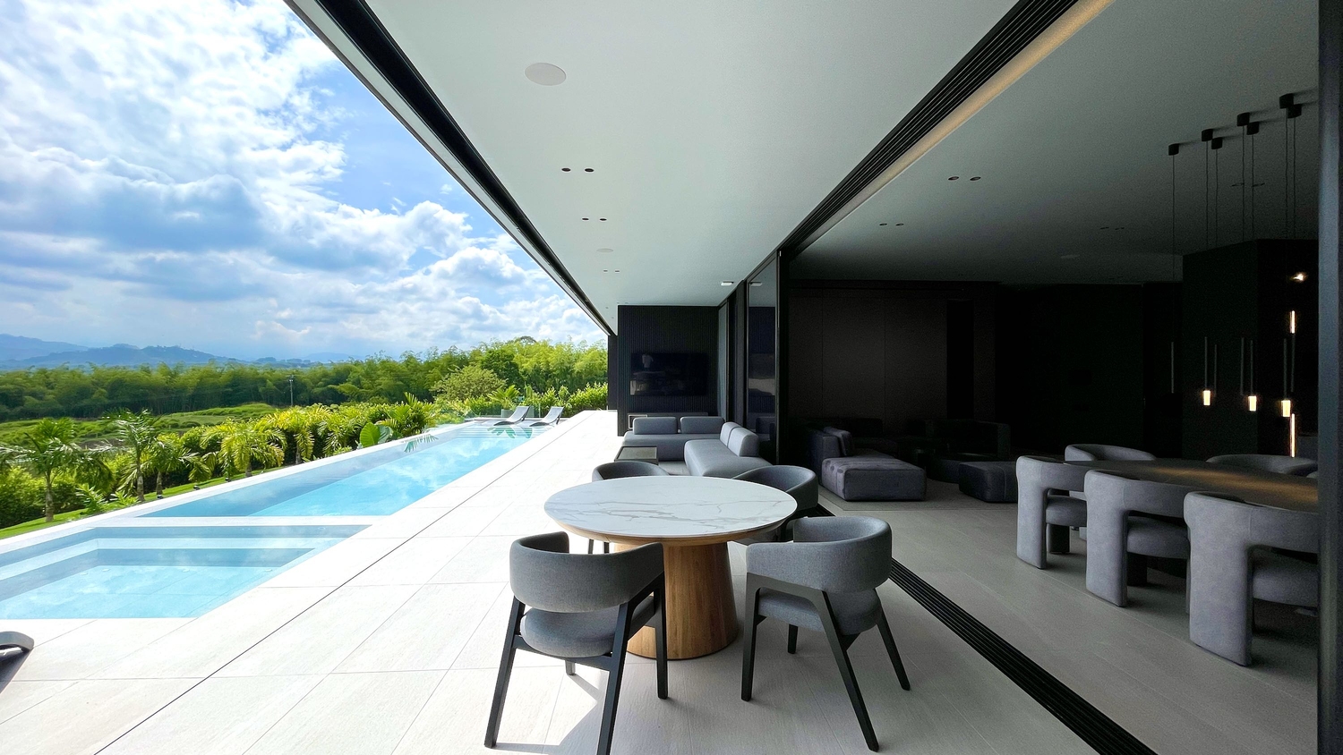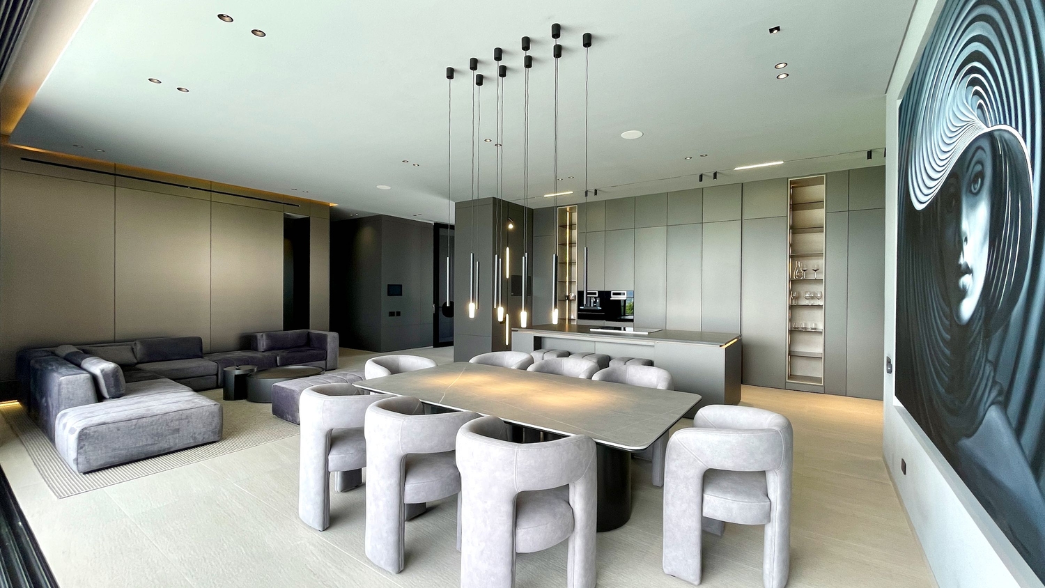 Su diseño arquitectónico, de líneas modernas en tonos grises y acabados de alta gama, refleja elegancia y sofisticación. La propiedad se entrega totalmente amoblada y equipada con un avanzado sistema de domótica, que permite controlar la iluminación, el sonido y la seguridad de forma inteligente.
