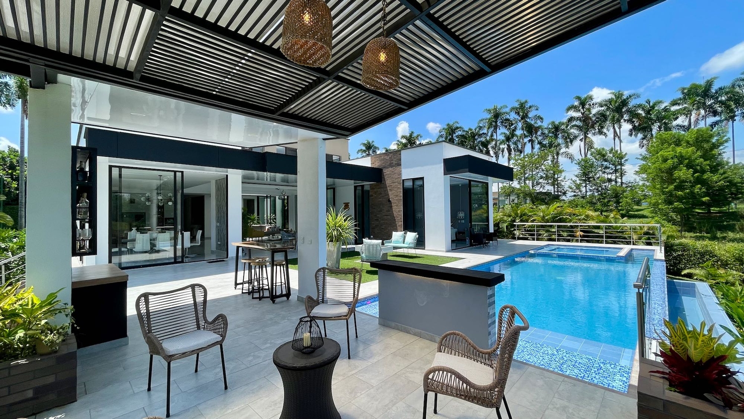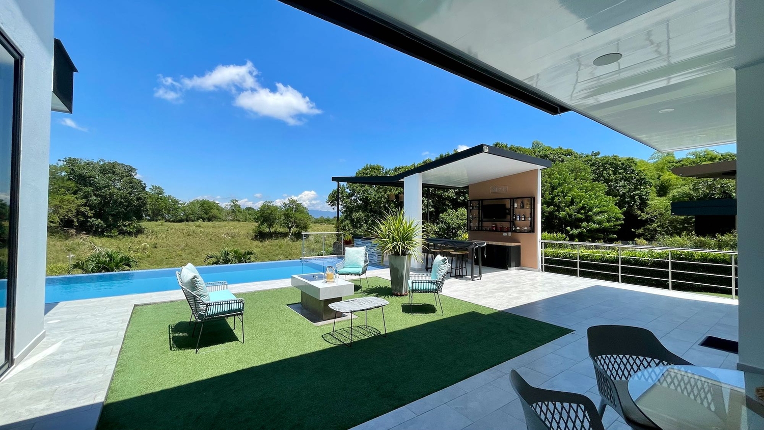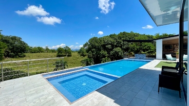 Descubre tu oasis de tranquilidad en esta espectacular casa campestre, donde el diseño elegante se fusiona con la naturaleza. Disfruta de momentos interminables de relajación en la impresionante piscina, rodeada de exuberantes zonas verdes y frondosos árboles que ofrecen un entorno sereno y refrescante, además de un gimnasio privado equipado para tus rutinas diarias. El interior de la casa es un verdadero refugio, con espacios únicos e impecables que invitan a la inspiración y la comodidad. Cada rincón ha sido pensado para brindar un estilo de vida excepcional, perfecto para quienes buscan un hogar lleno de calidez y belleza.