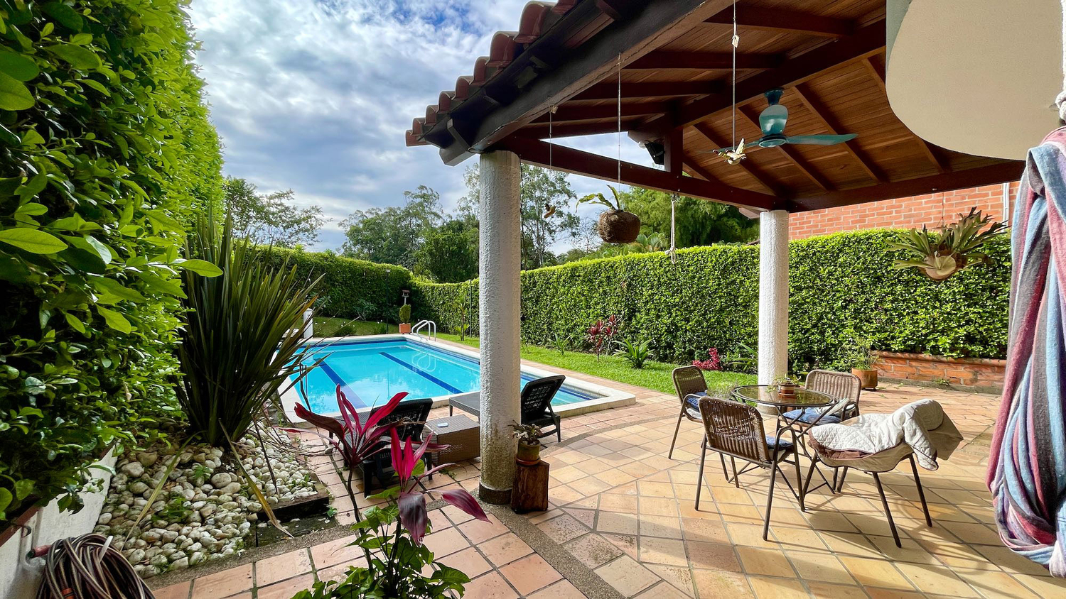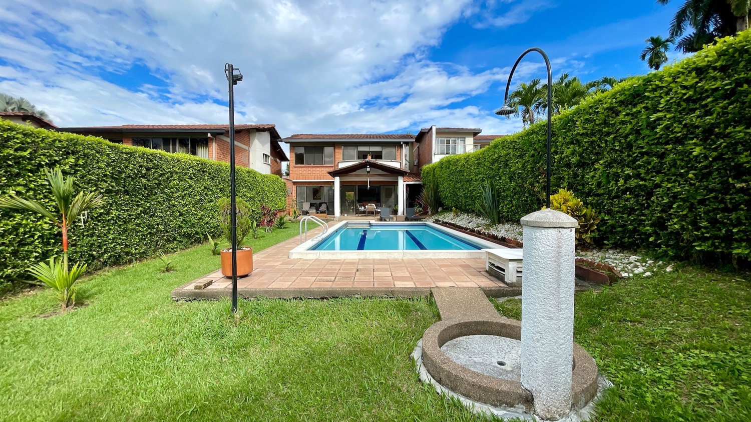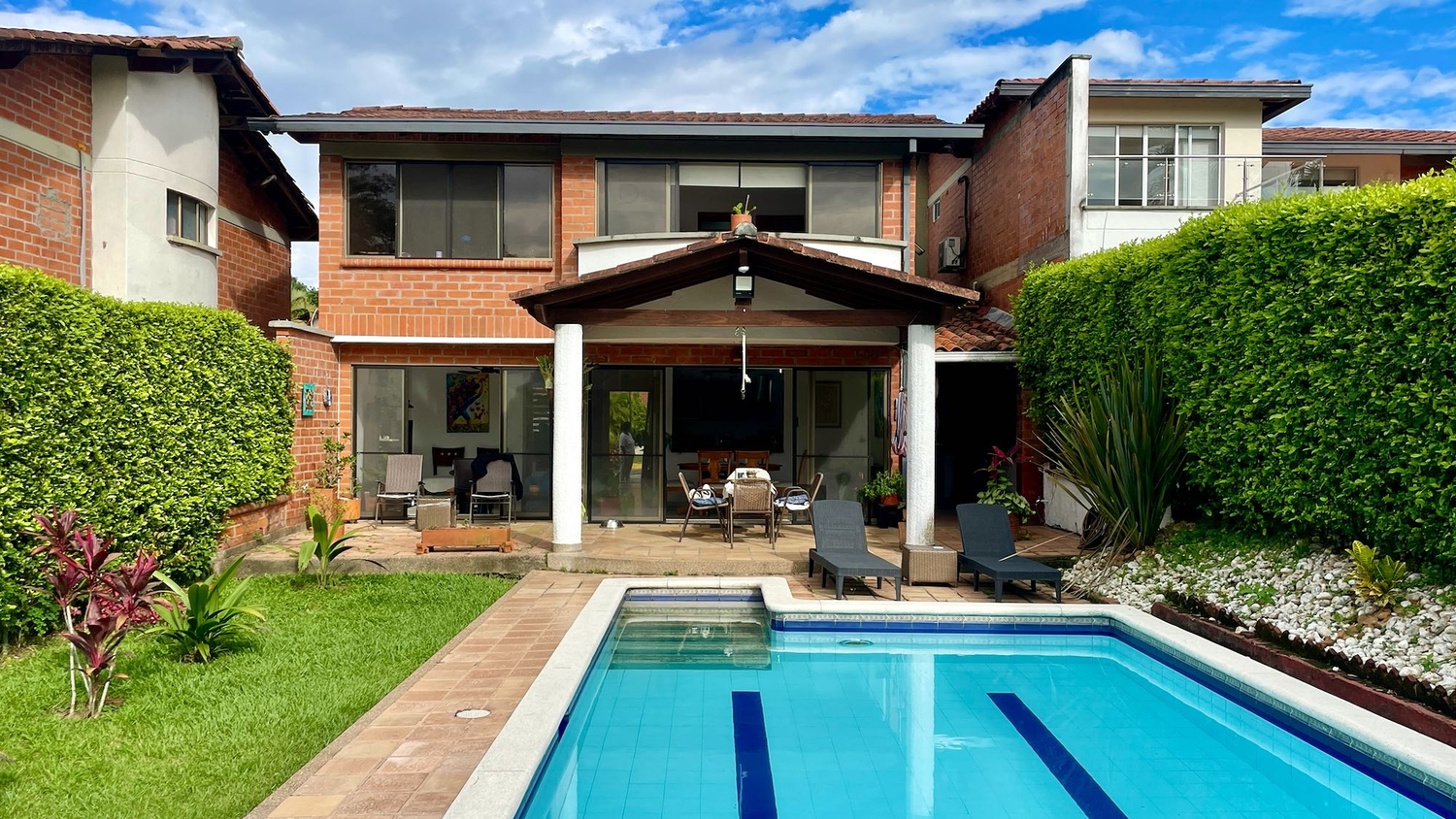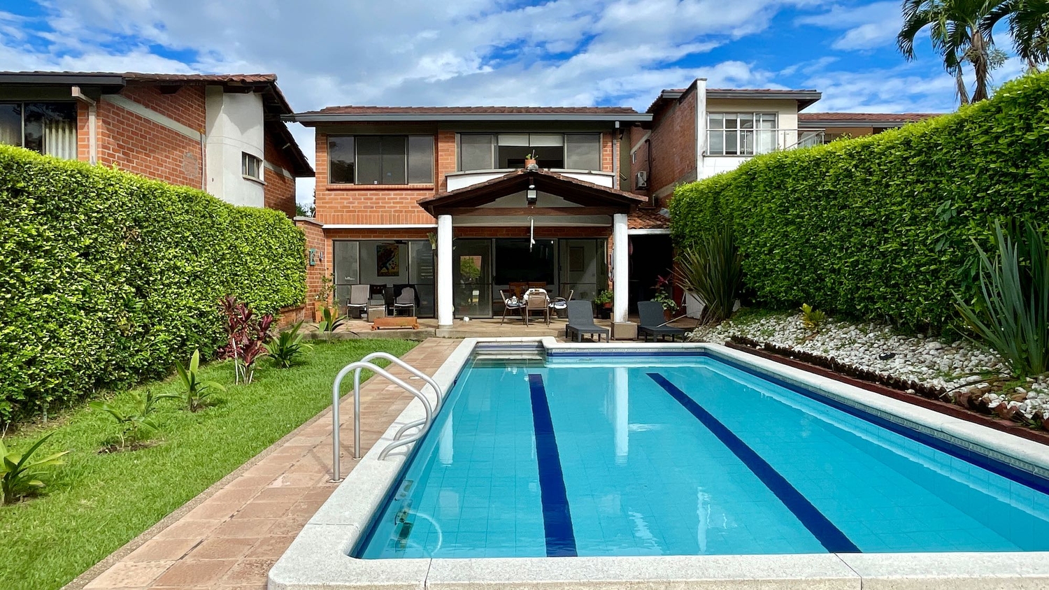 En Cerritos se encuentra esta extraordinaria propiedad que sobresale por su gran diseño exterior e interior, distribución e iluminación, también por su extraordinaria ubicación ya que se encuentra cerca a la ciudad y se accede por vías totalmente pavimentadas. La propiedad cuenta con una gran piscina, zonas verdes hermosa y una vista increíble a los guadales y a los eucaliptos.