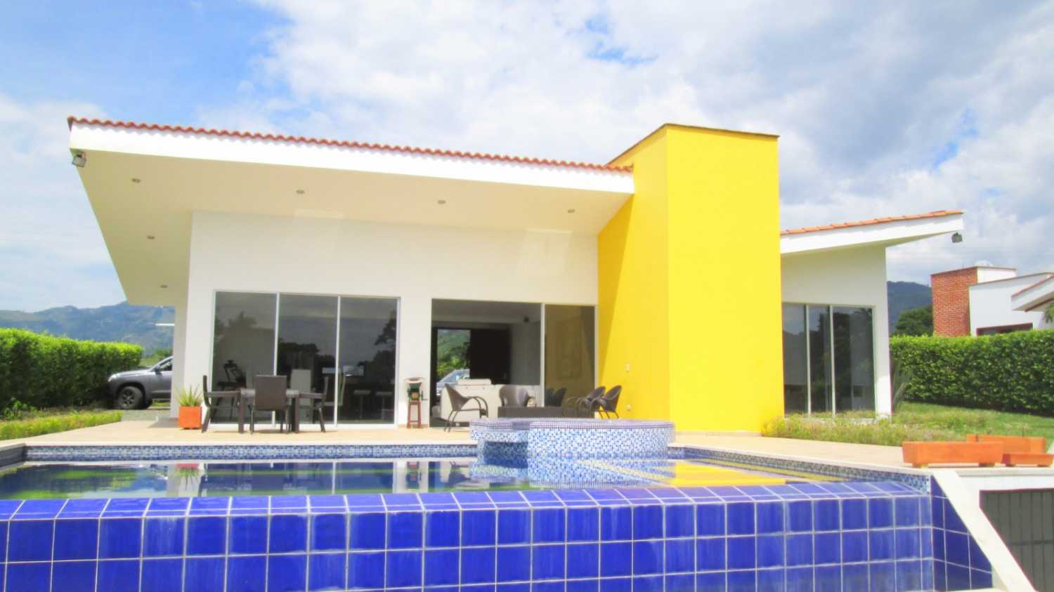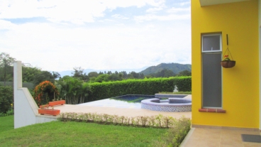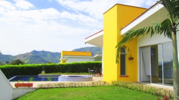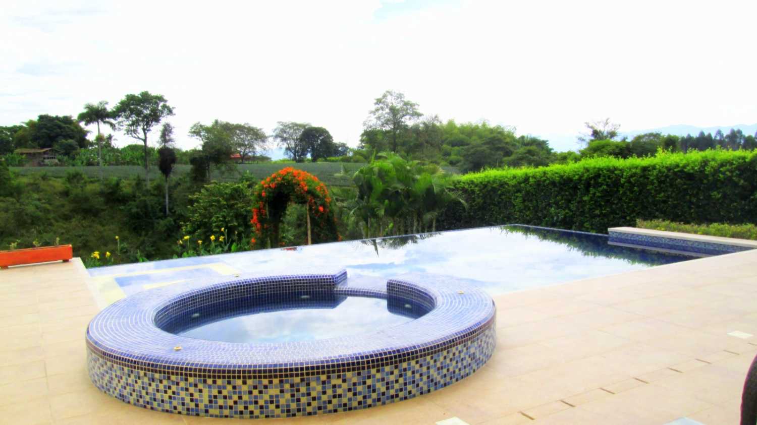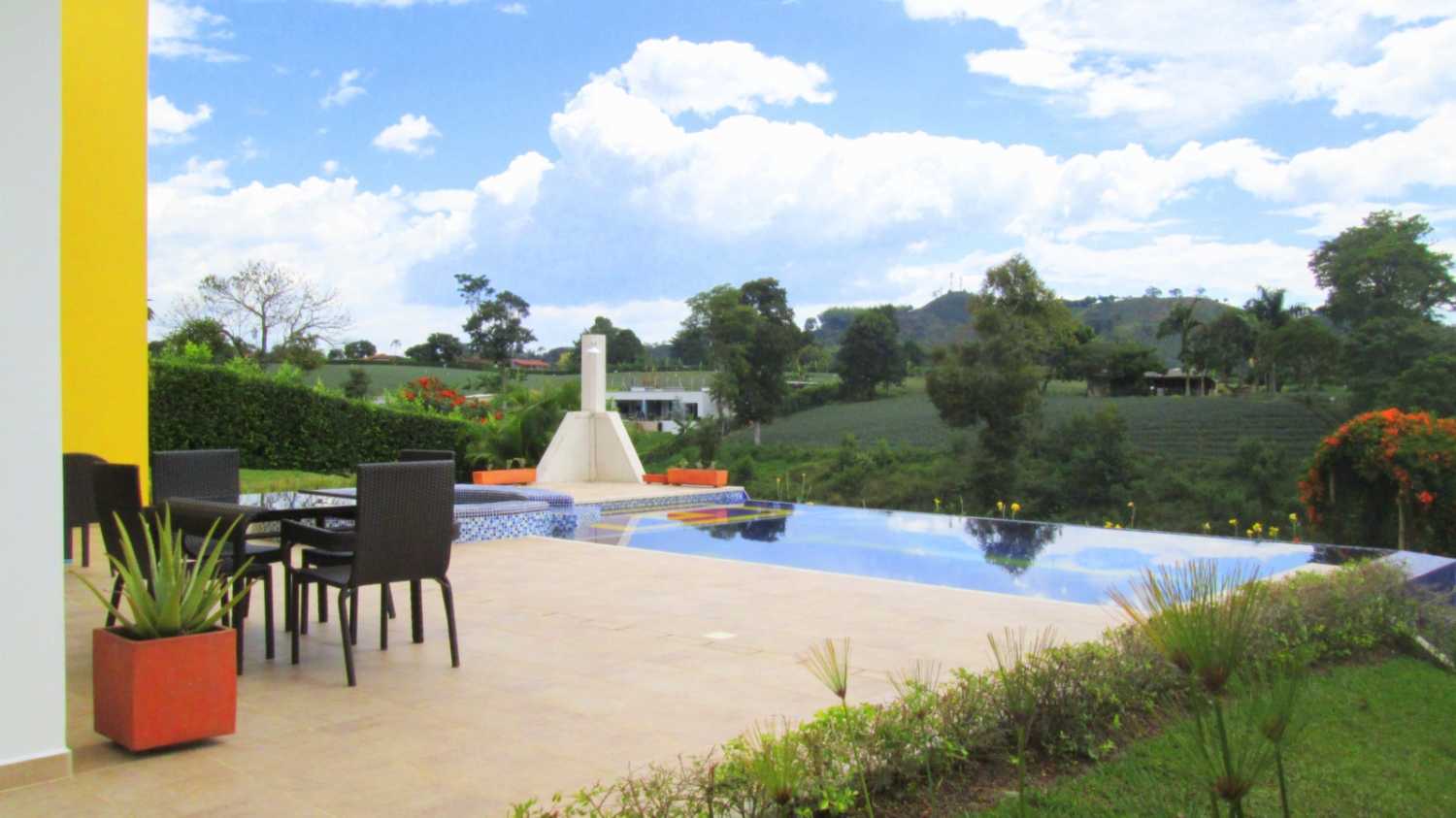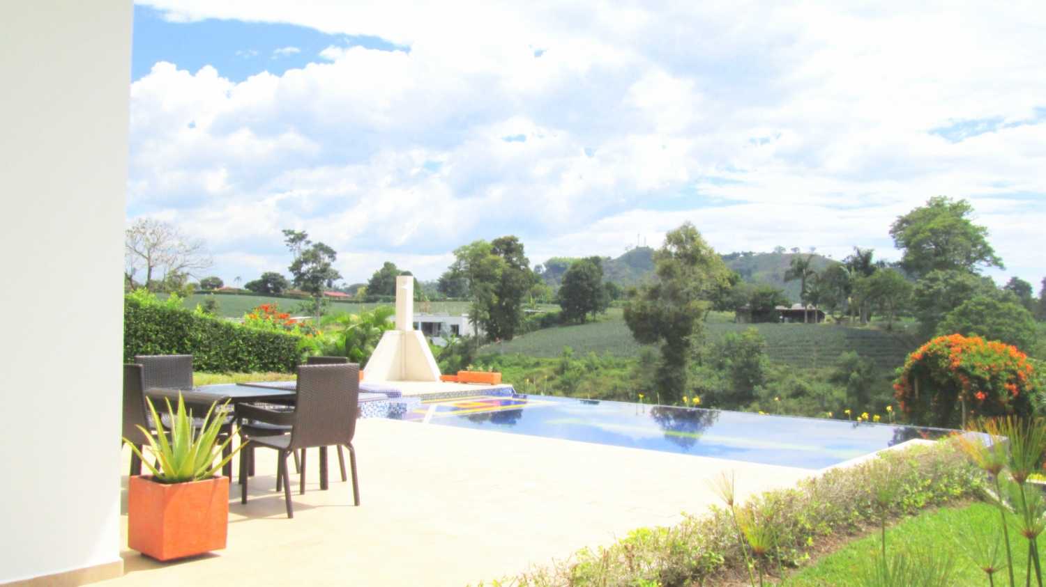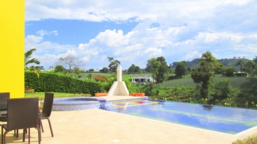 En Combia encontramos esta magnífica casa campestre que destaca por su diseño arquitectónico contemporáneo y por la majestuosa vista que se percibe desde sus terrazas. La propiedad diseñada para aprovechar su entorno natural se conforma por espacios amplios y abiertos con vista a la piscina con horizonte perdido, la cual se mezcla con las montañas.