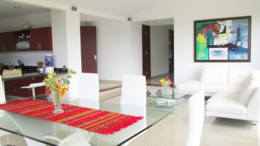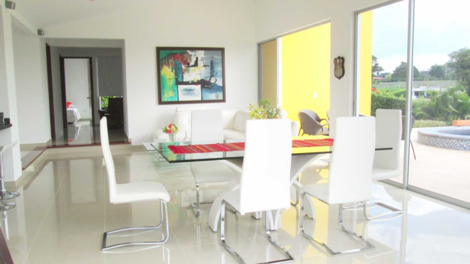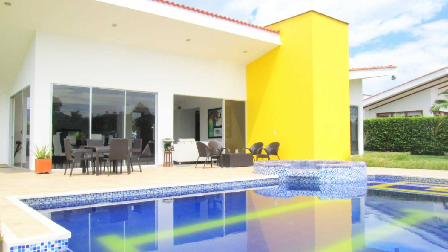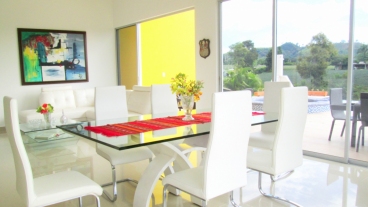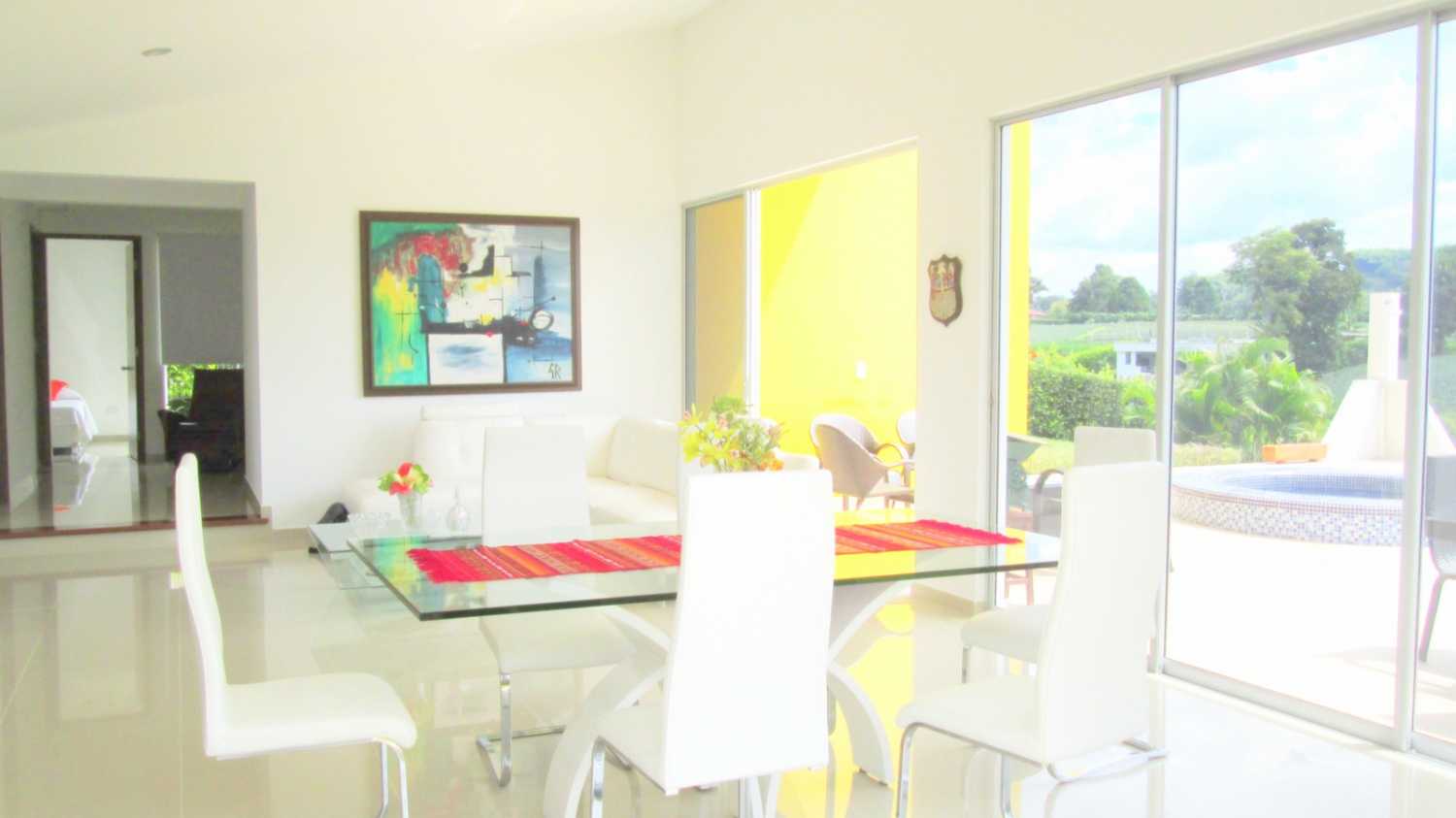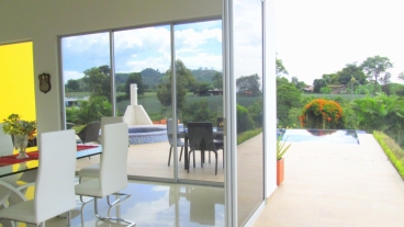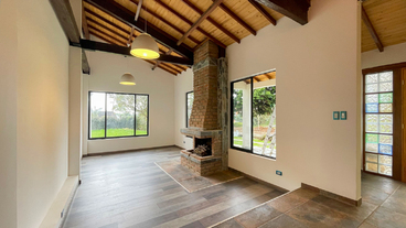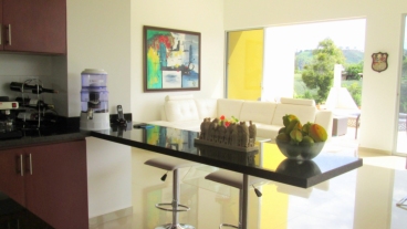 En Combia encontramos esta magnífica casa campestre que destaca por su diseño arquitectónico contemporáneo y por la majestuosa vista que se percibe desde sus terrazas. La propiedad diseñada para aprovechar su entorno natural se conforma por espacios amplios y abiertos con vista a la piscina con horizonte perdido, la cual se mezcla con las montañas.