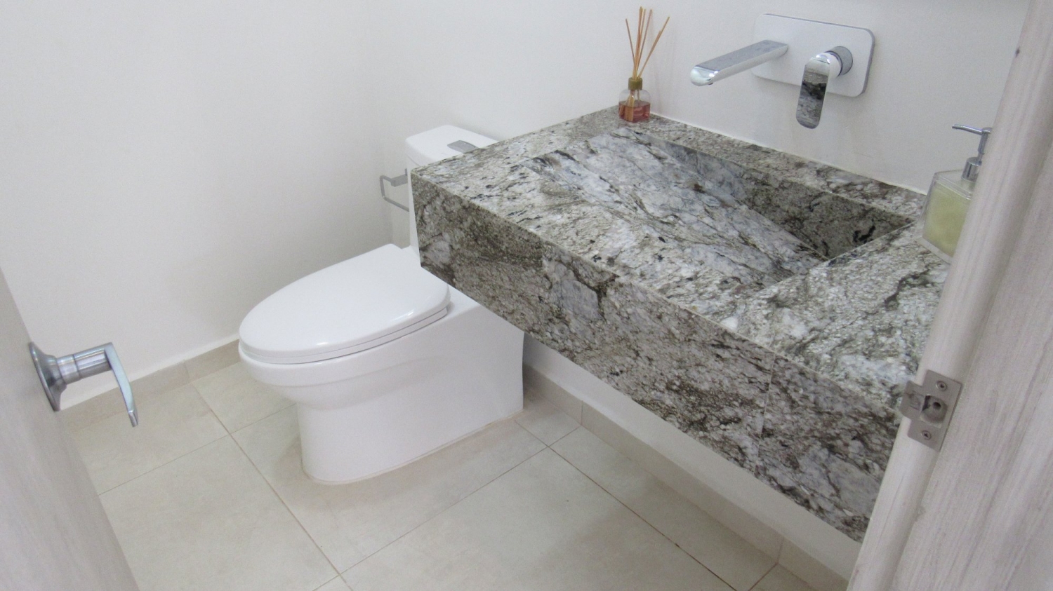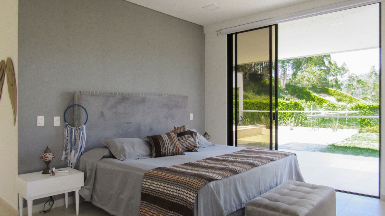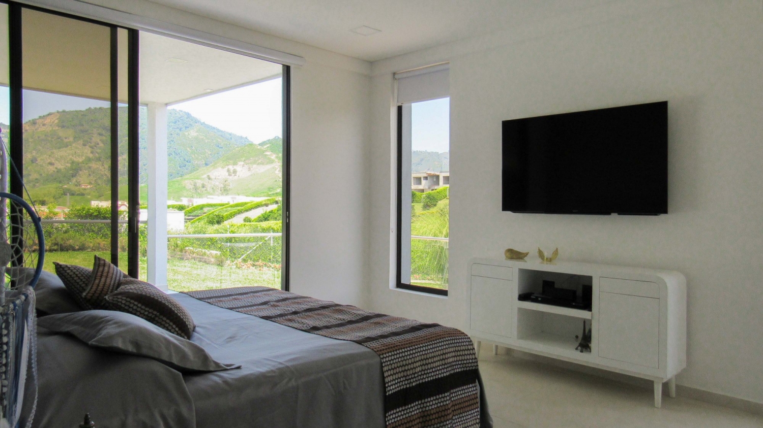 Habitación principal con baño, vestier y terraza con vista al lago