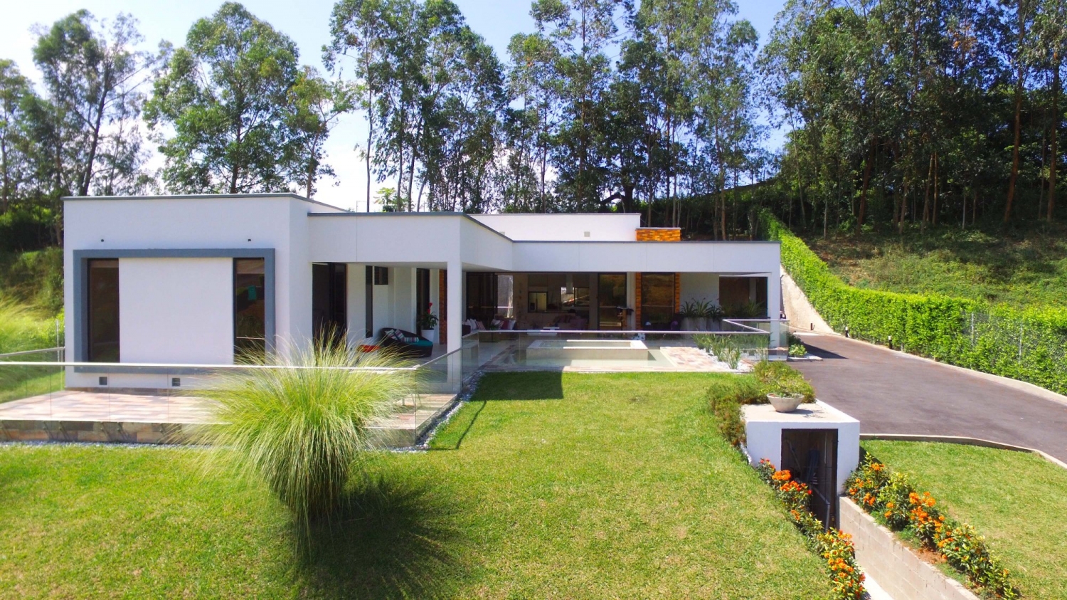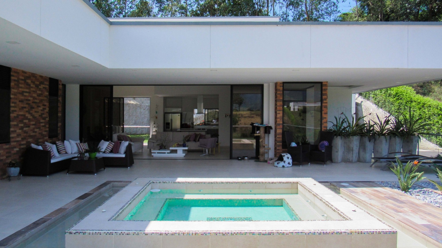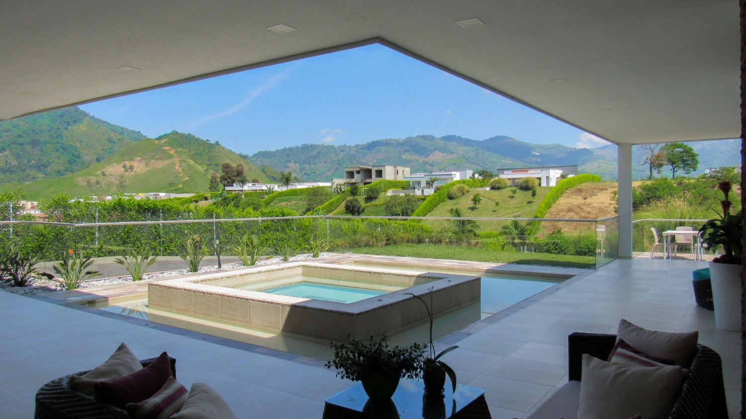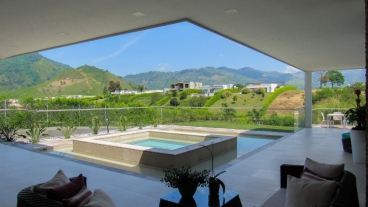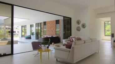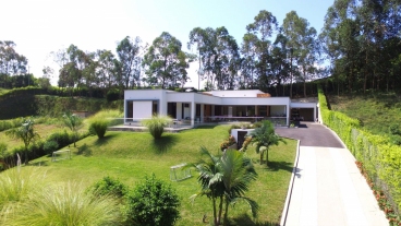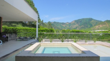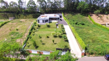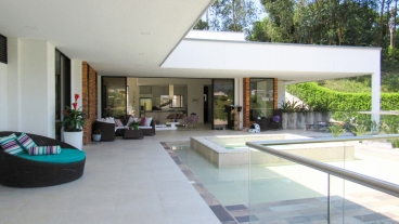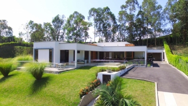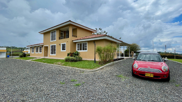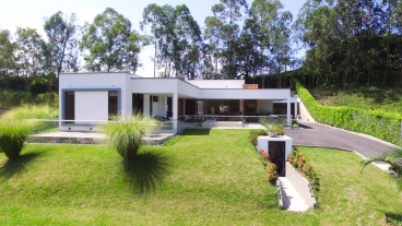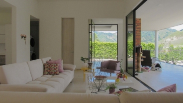 En Combia encontramos esta magnífica casa campestre rodeada de pinos que destaca por su diseño arquitectónico contemporáneo y por la majestuosa vista a las montañas cafeteras que se percibe desde sus terrazas. La propiedad diseñada para aprovechar su entorno natural se conforma por espacios amplios y abiertos.