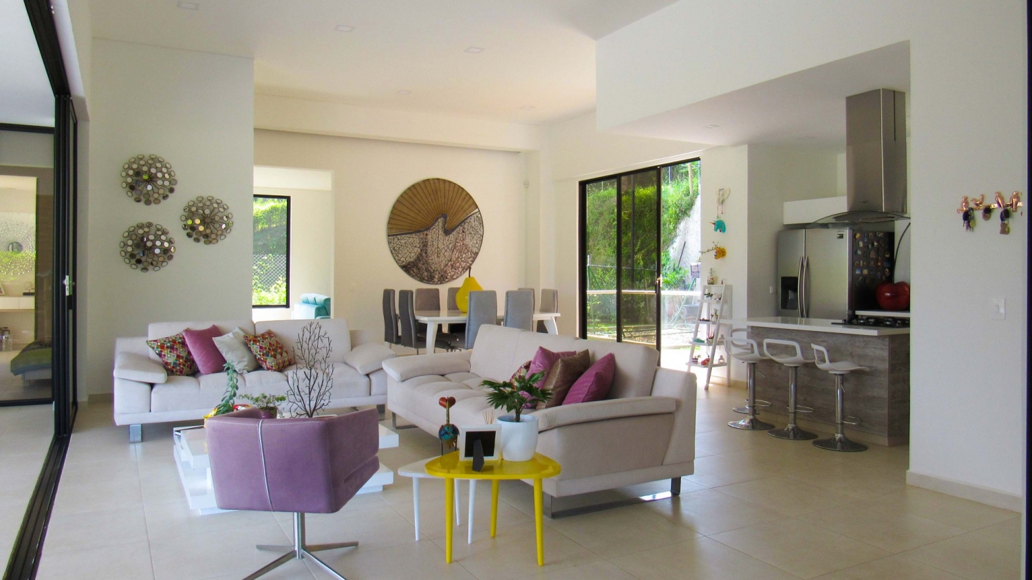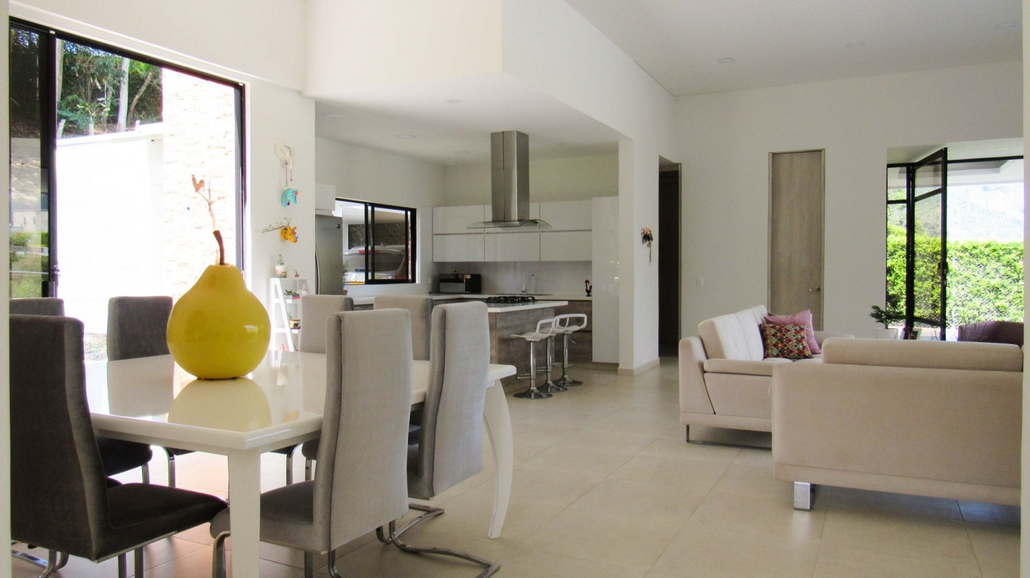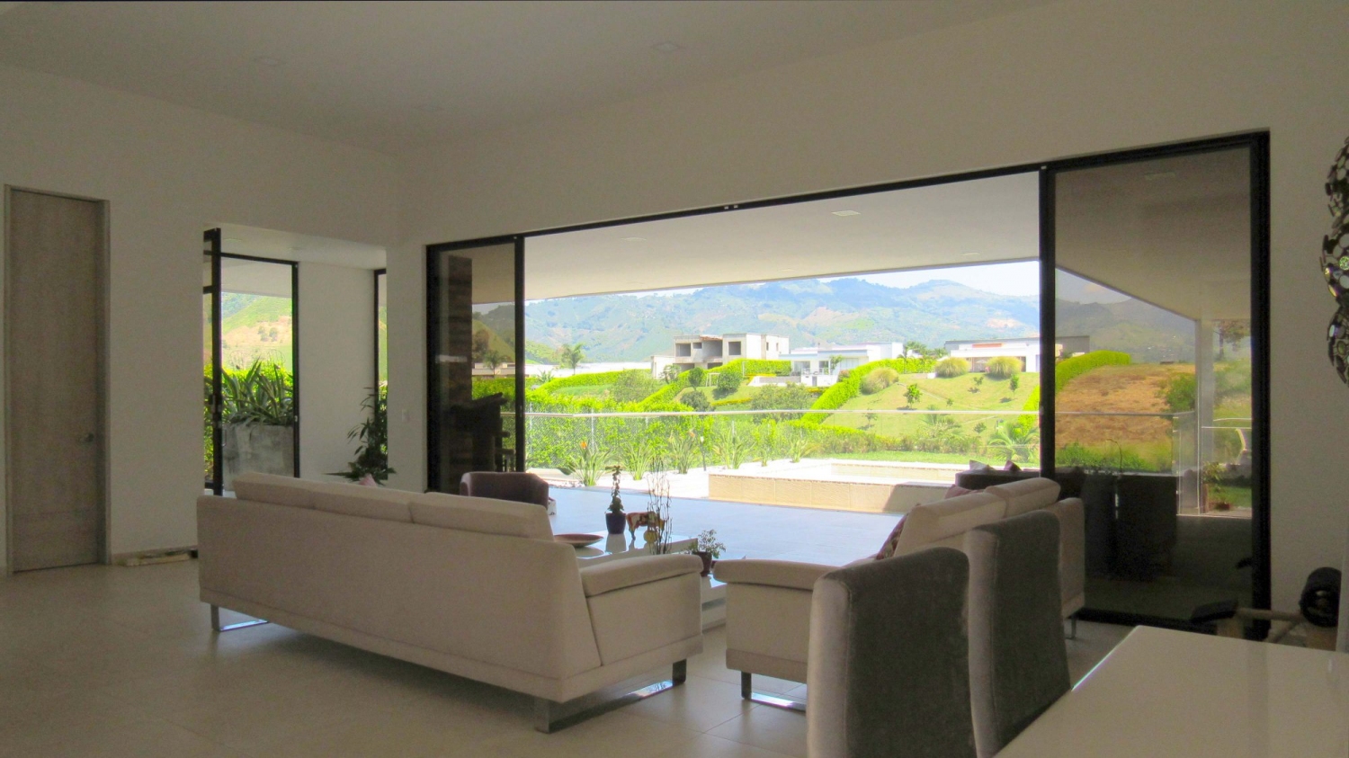 En Combia encontramos esta magnífica casa campestre rodeada de pinos que destaca por su diseño arquitectónico contemporáneo y por la majestuosa vista a las montañas cafeteras que se percibe desde sus terrazas. La propiedad diseñada para aprovechar su entorno natural se conforma por espacios amplios y abiertos.