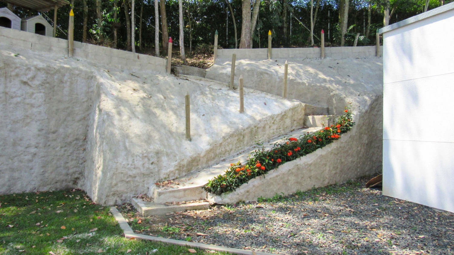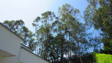Jardín exterior con sendero a los pinos