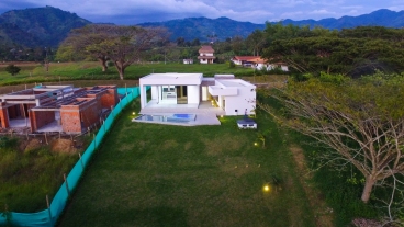 En las Violetas Condominio Campestre - Combia encontramos esta magnífica casa campestre que destaca por su sofisticado diseño arquitectónico contemporáneo y por la majestuosa vista que se percibe desde sus terrazas hacia los Guaduales. La propiedad diseñada para aprovechar el entorno natural de la zona y se conforma por espacios amplios e iluminados.