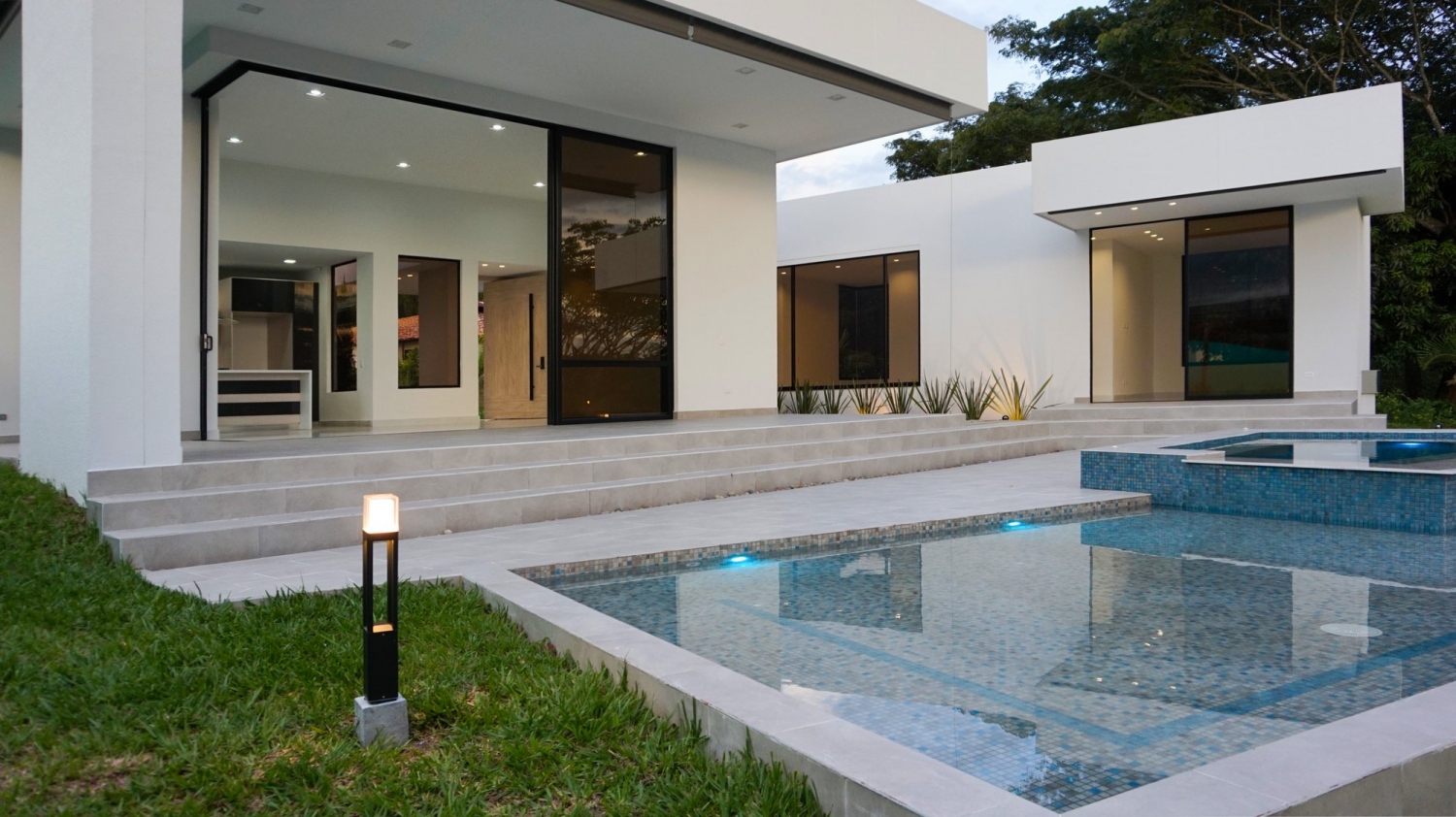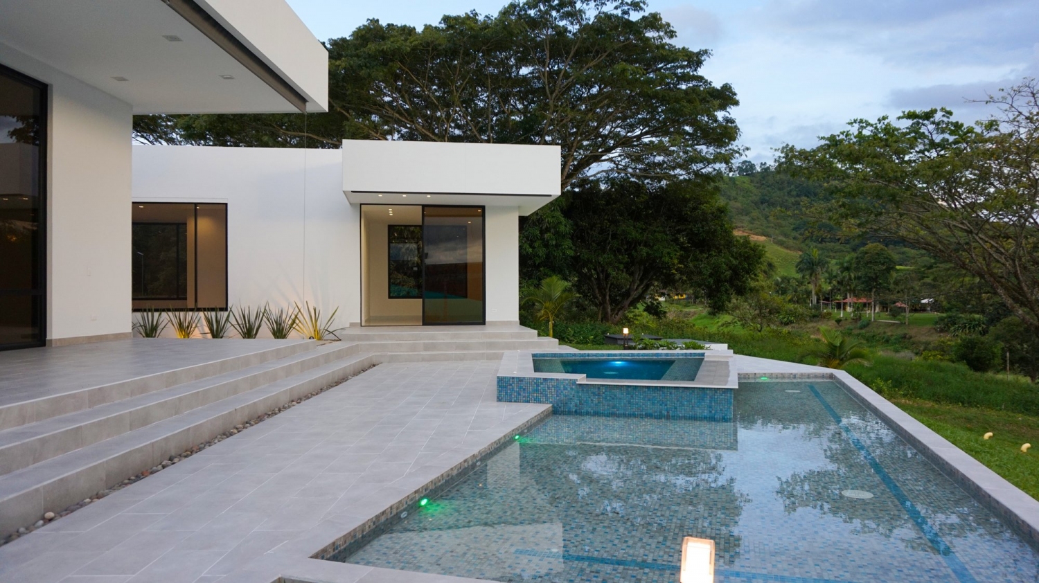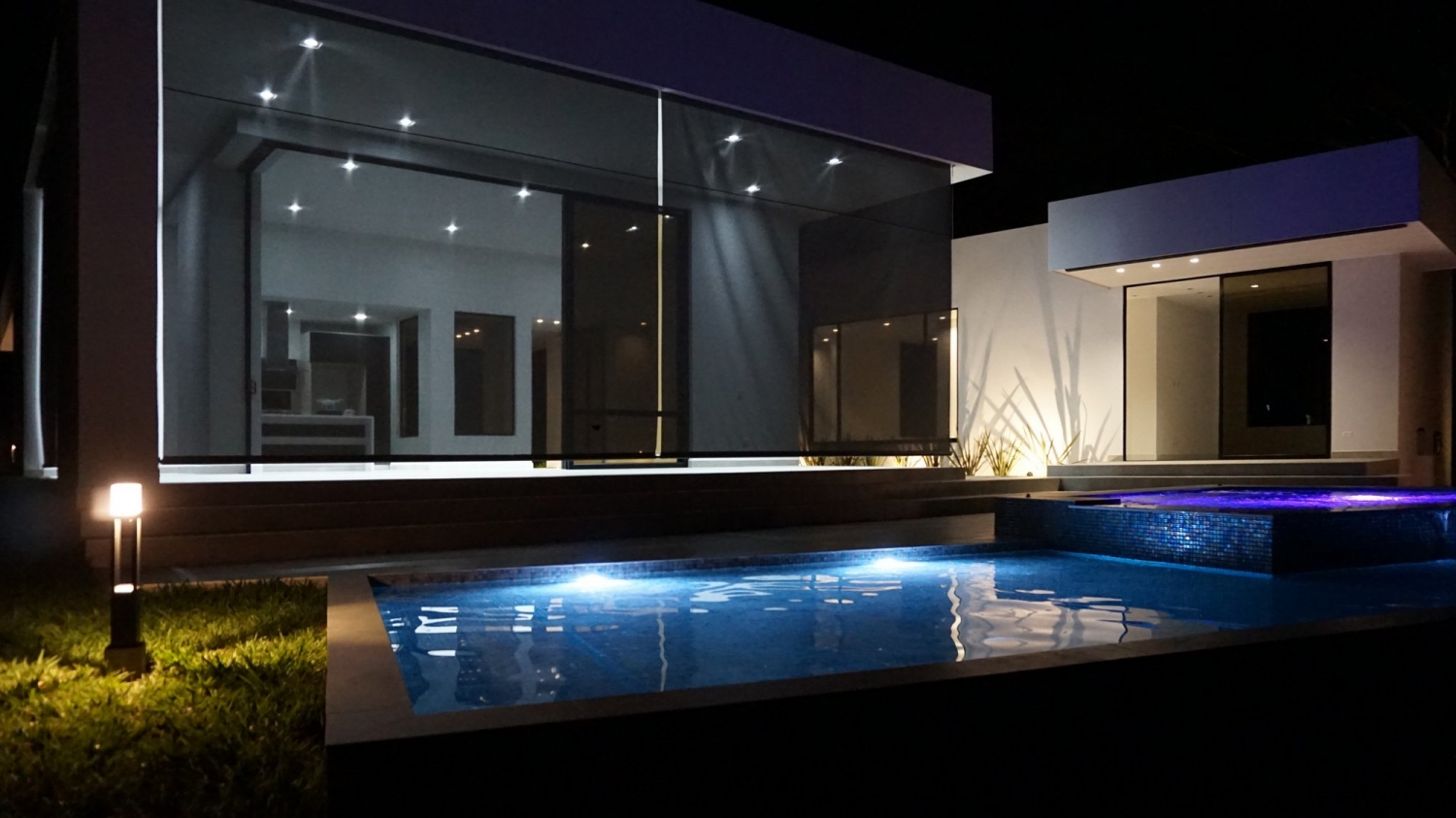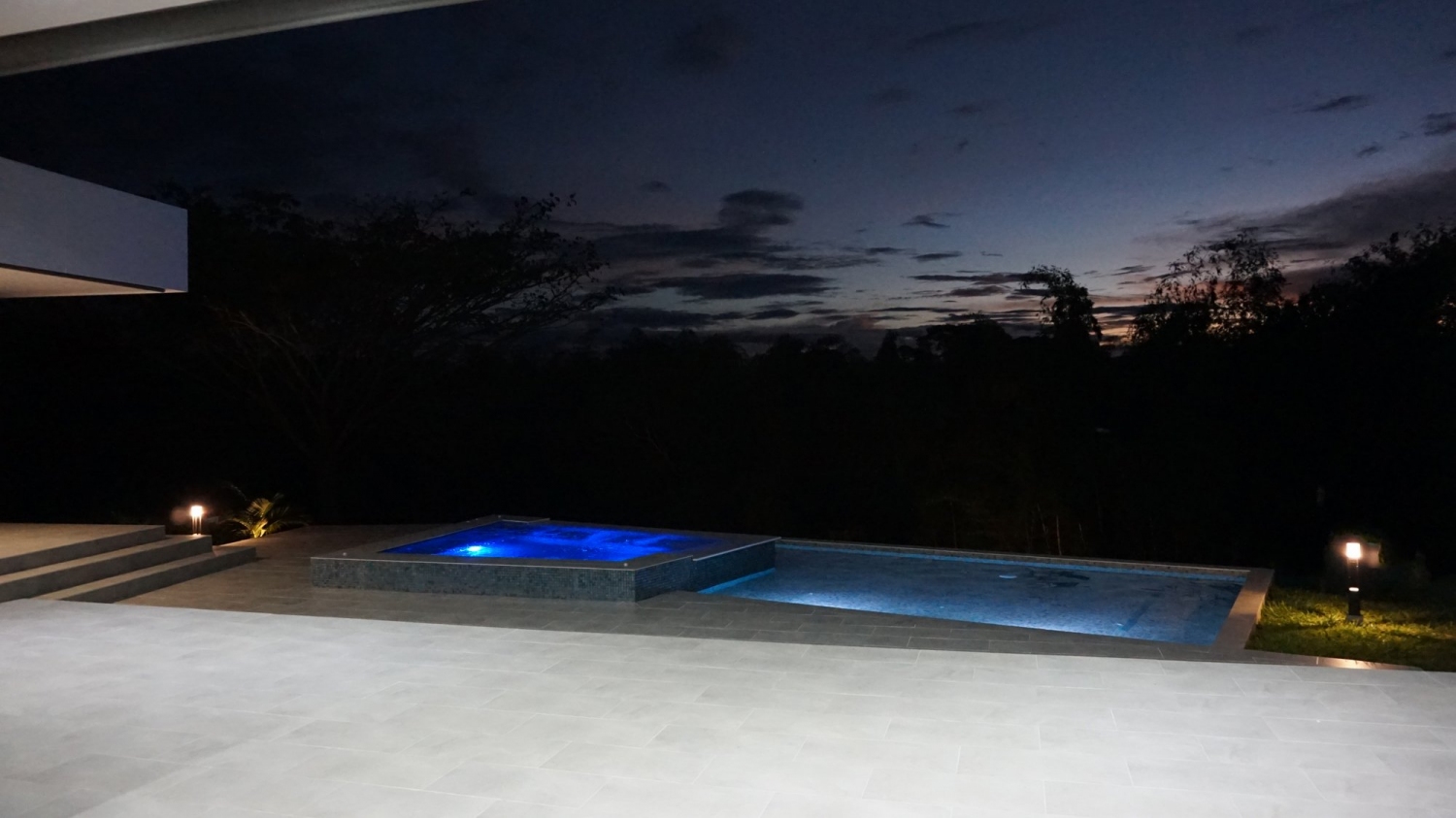 Piscina y jacuzzi iluminados