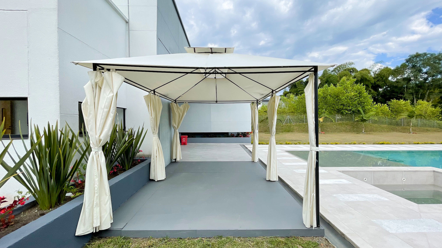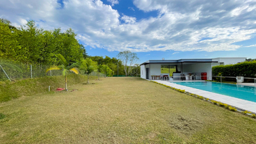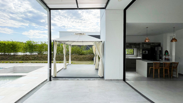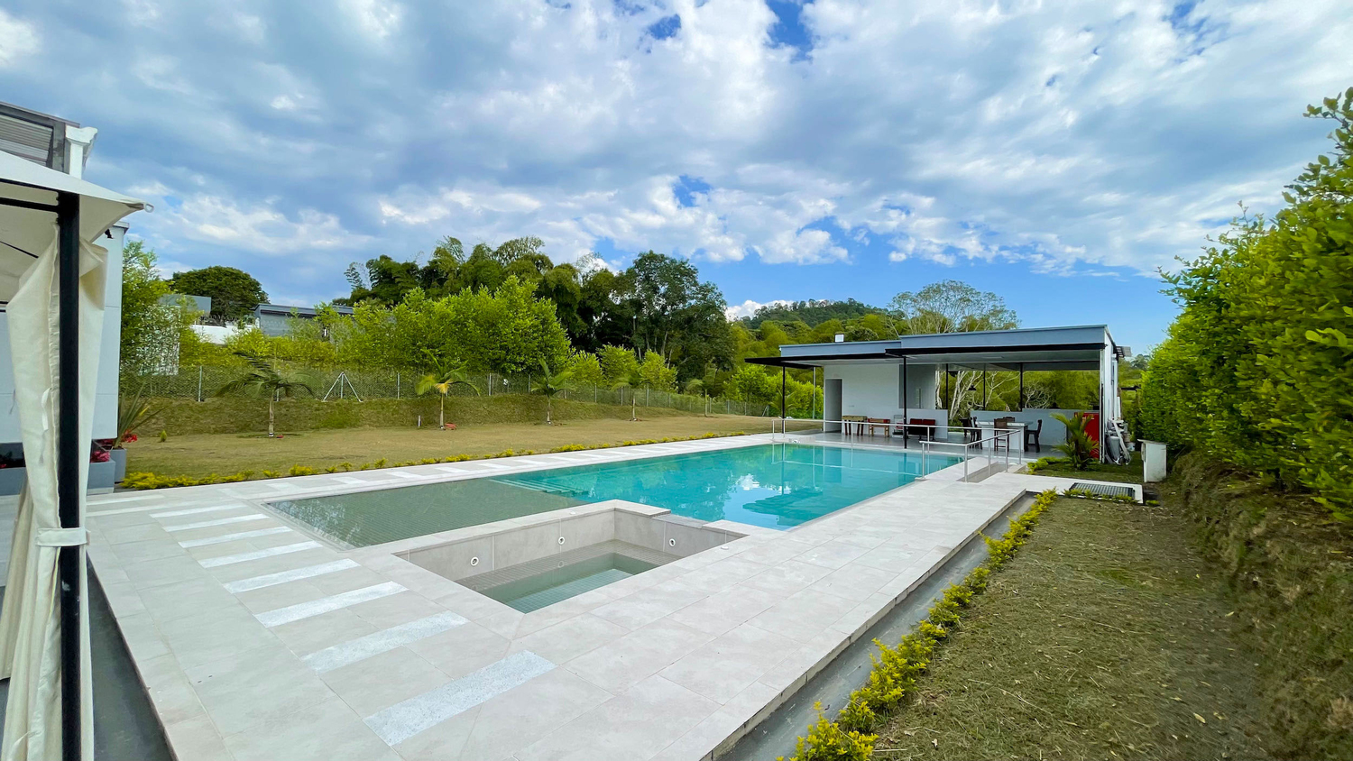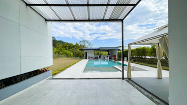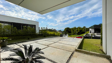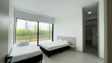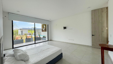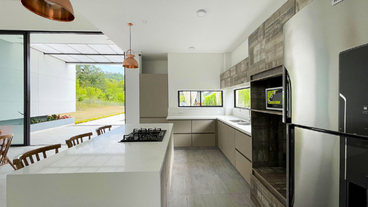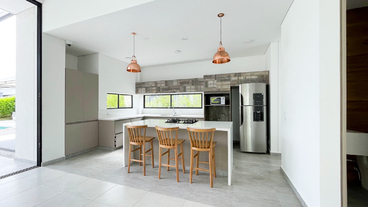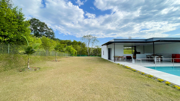 En Combia Condominio Campestre encontramos esta magnífica casa campestre amoblada que destaca por su sofisticado diseño arquitectónico contemporáneo y por la majestuosa vista que se percibe desde sus terrazas. La propiedad diseñada para aprovechar el entorno natural de un terreno plano se conforma por espacios amplios y abiertos con vista a la piscina y demás amenidades como o el salón social con cocineta y horno.