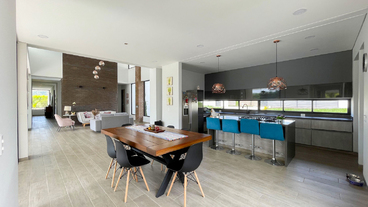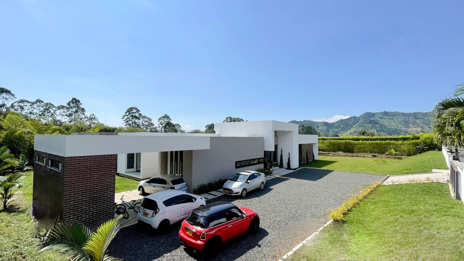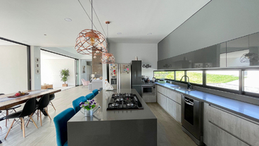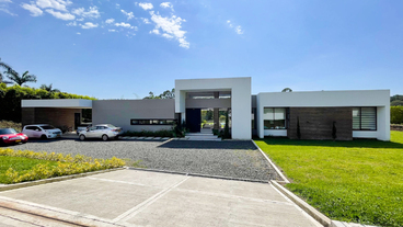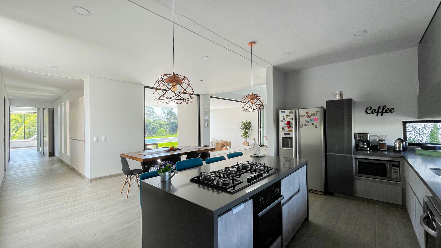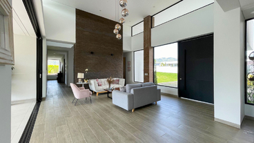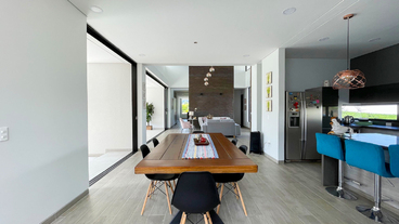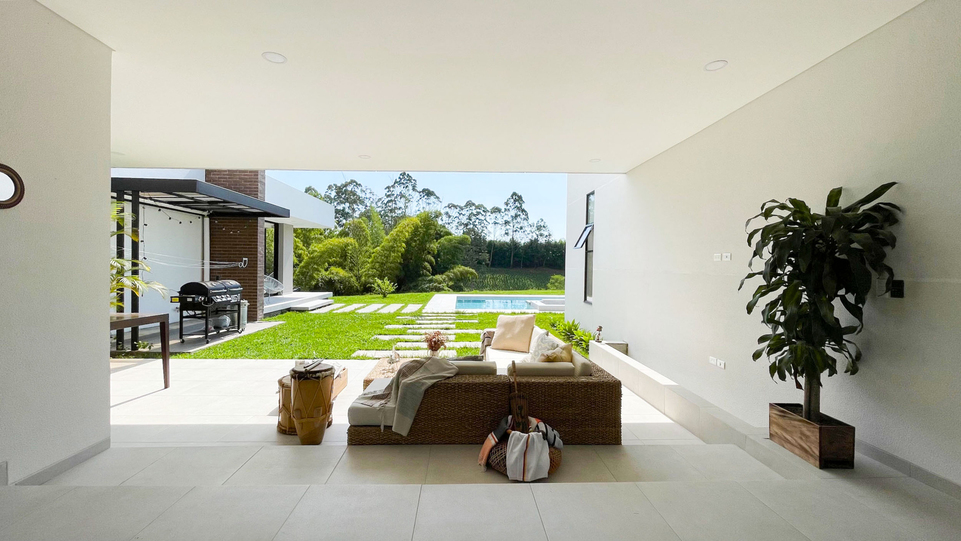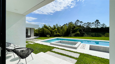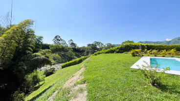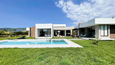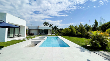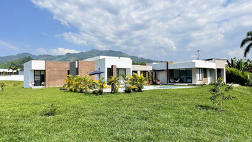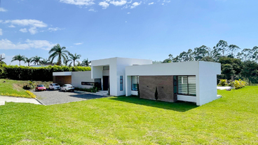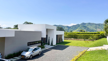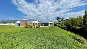 En Combia en Condominio Campestre encontramos esta magnífica casa campestre que destaca por su diseño arquitectónico contemporáneo y por la majestuosa vista que se percibe desde sus terrazas. La propiedad diseñada para aprovechar su entorno natural se conforma por espacios amplios y abiertos con vista a la piscina con horizonte perdido, la cual se mezcla con los guaduales, el lago y las montañas.