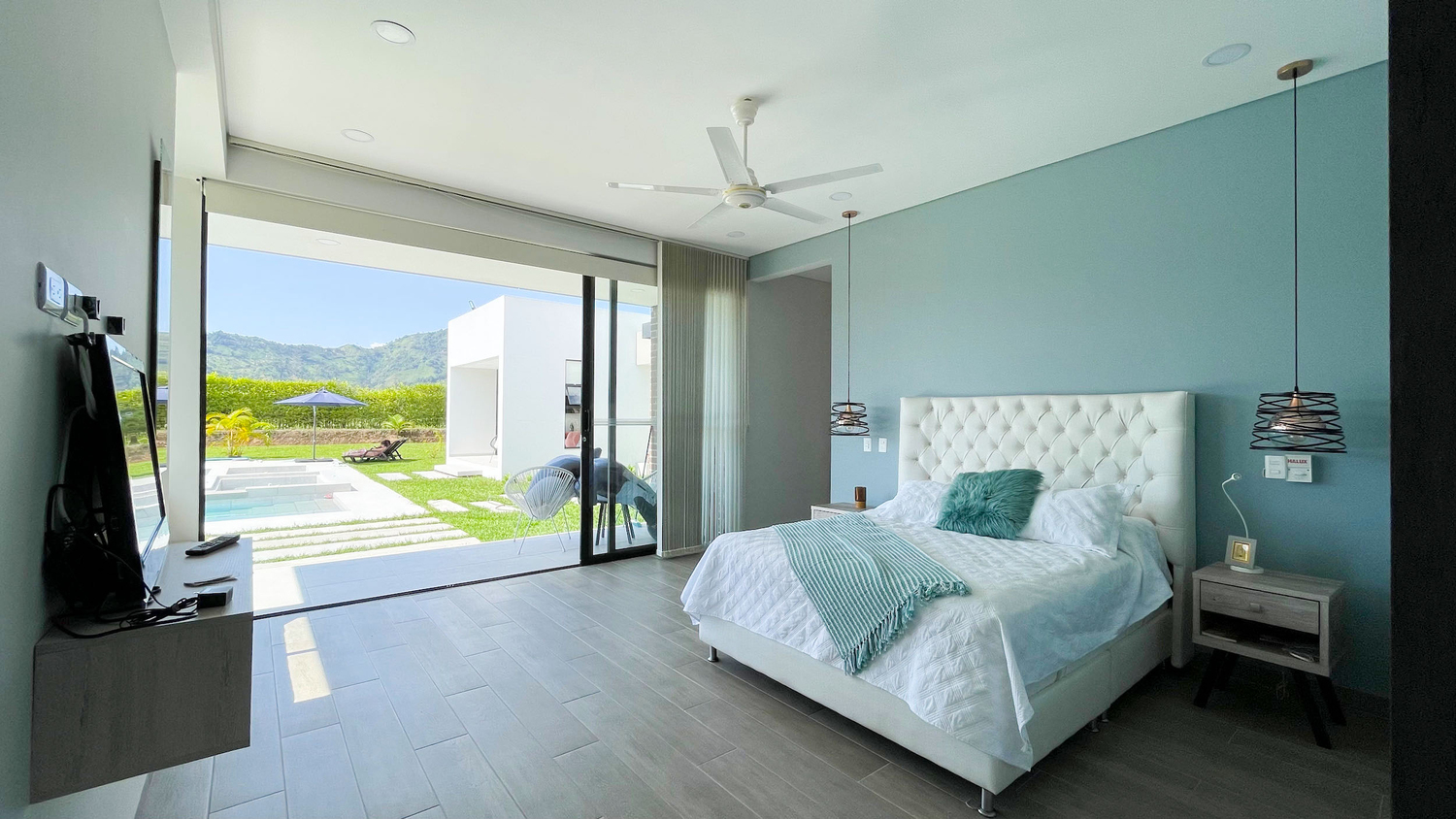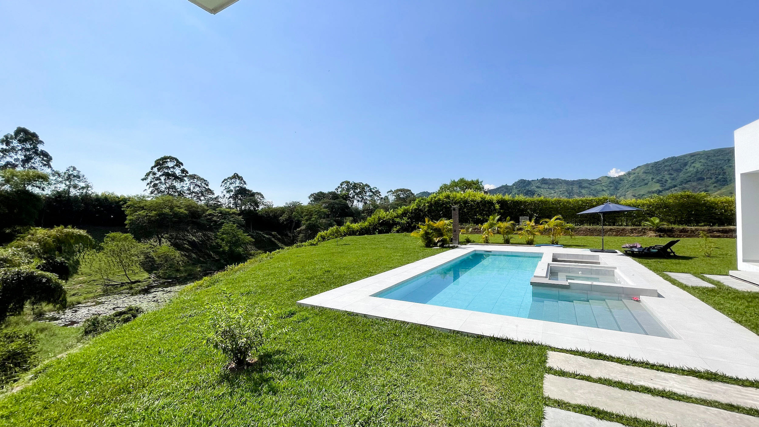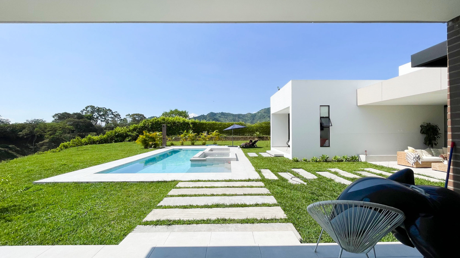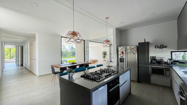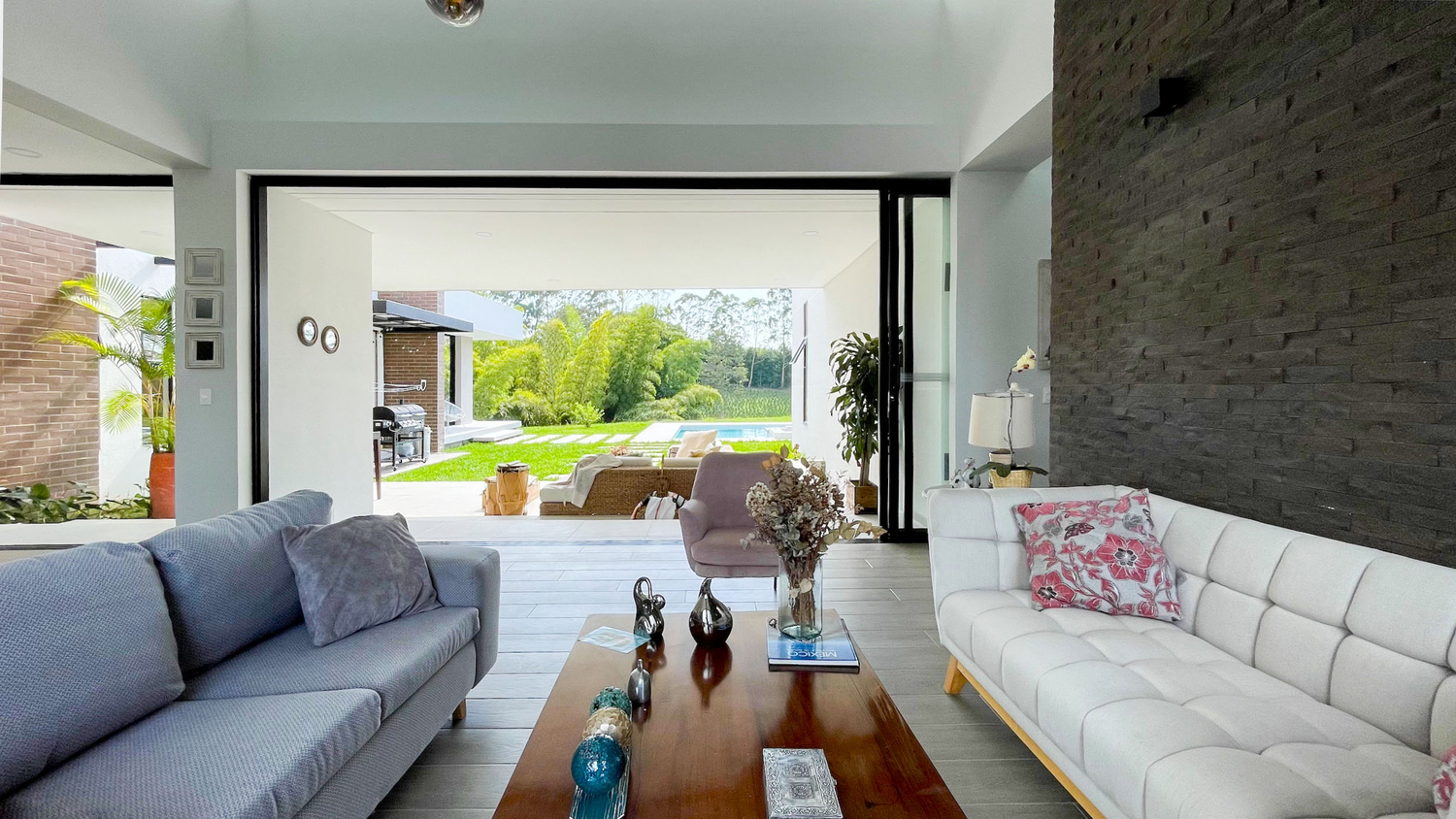 En Combia en Condominio Campestre encontramos esta magnífica casa campestre que destaca por su diseño arquitectónico contemporáneo y por la majestuosa vista que se percibe desde sus terrazas. La propiedad diseñada para aprovechar su entorno natural se conforma por espacios amplios y abiertos con vista a la piscina con horizonte perdido, la cual se mezcla con los guaduales, el lago y las montañas.