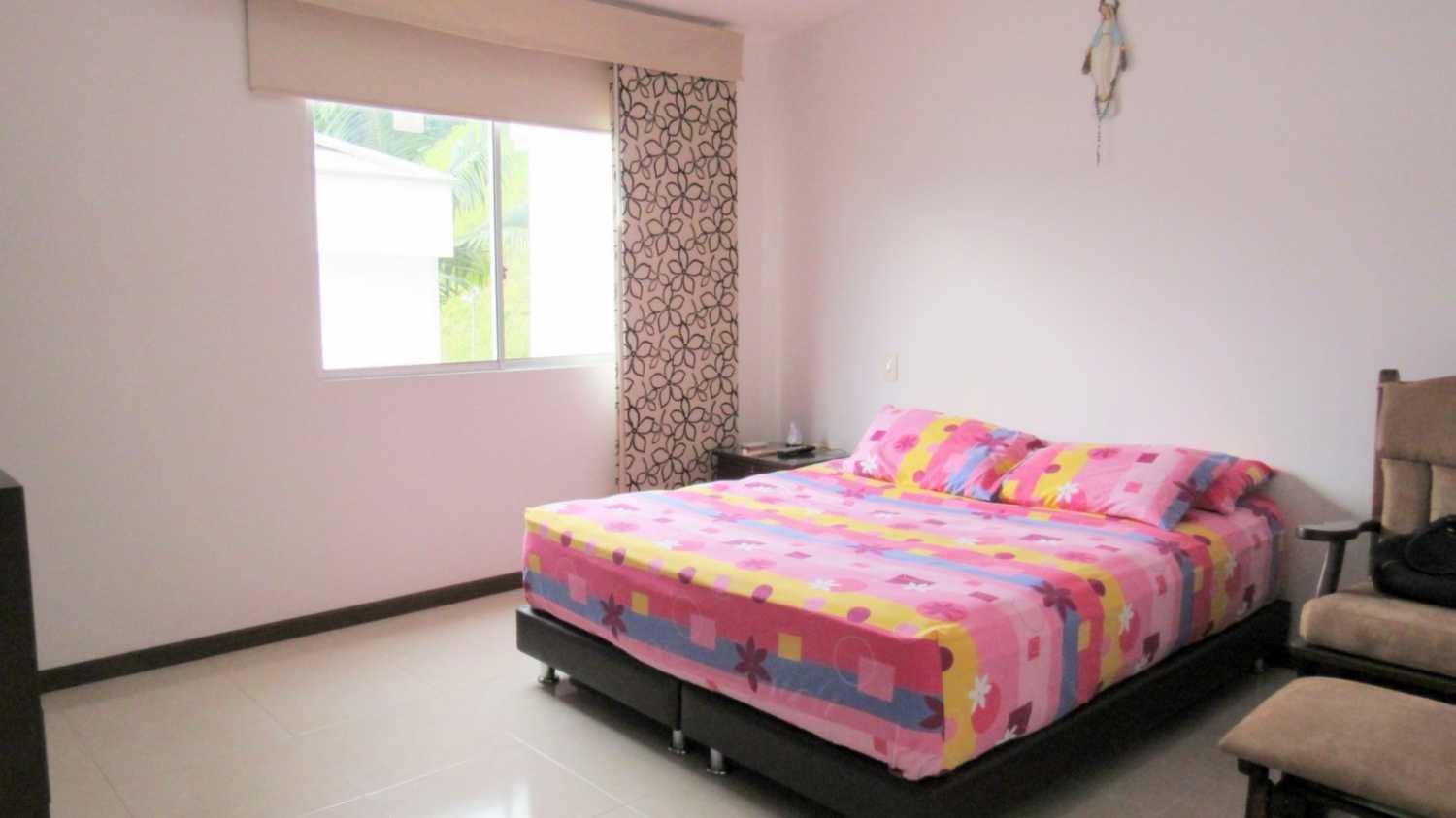 Alcoba principal con vestier y baño.