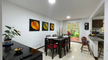 Además, cuenta con una sala de estar, cocina, comedor y un patio trasero perfecto para actividades al aire libre, la casa es amplia y tiene acabados en madera.