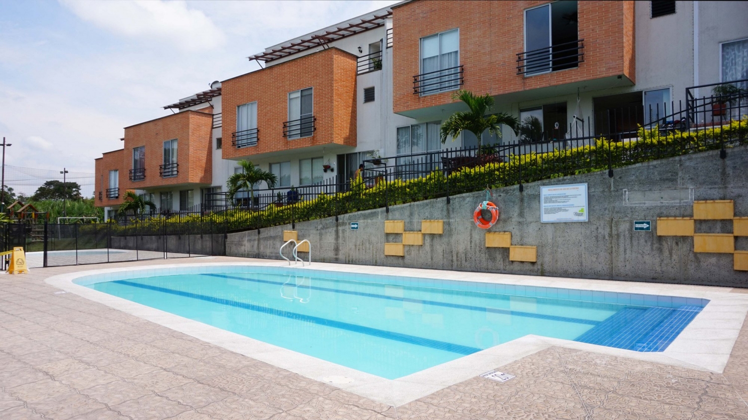 Cuenta con salón social, zona de juegos infantiles, vigilancia las 24 horas, parqueadero para visitantes, zonas verdes, piscina y cancha de microfútbol.