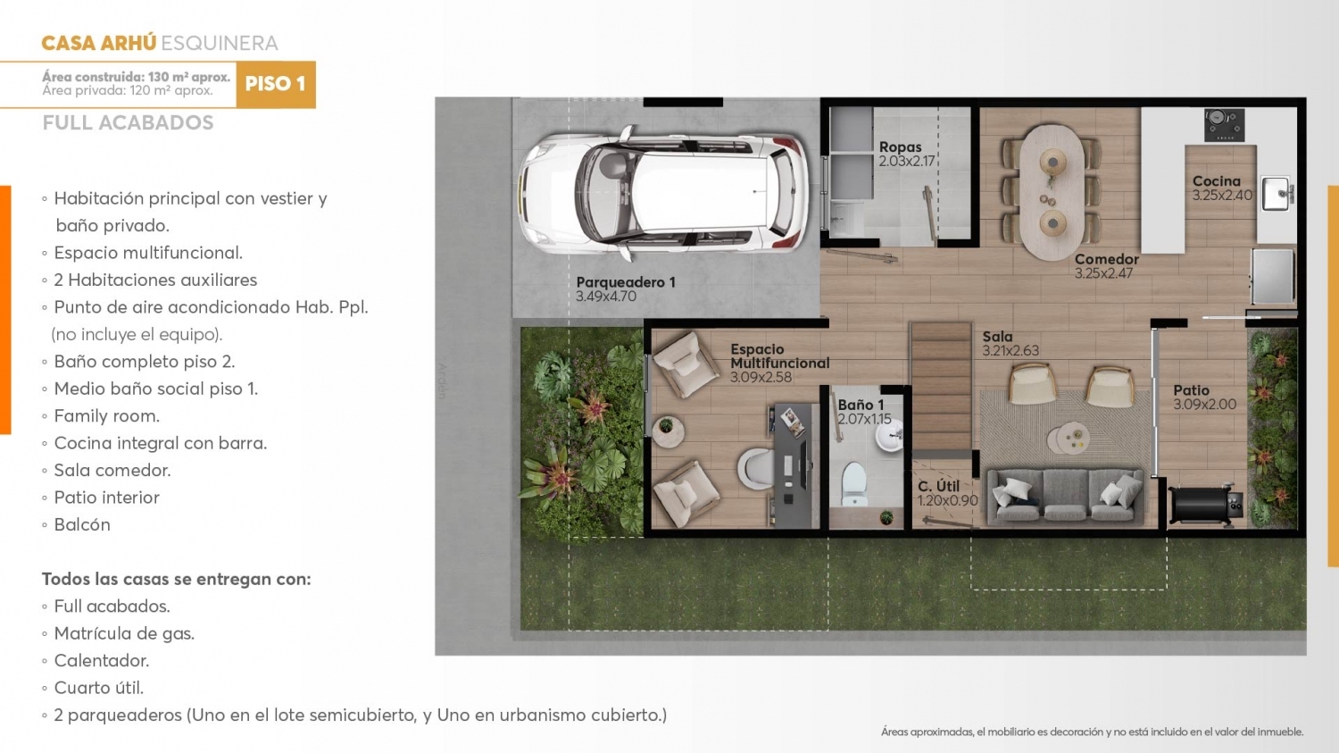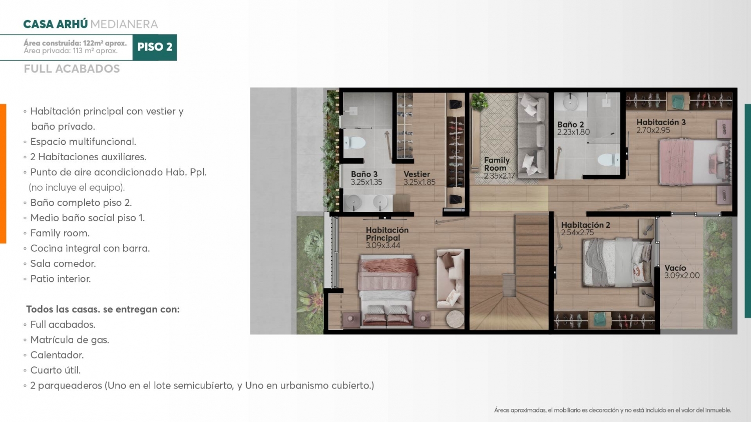 Estas casas se caracterizan por su diseño compacto, con circulaciones fluidas y espacios cuidadosamente definidos para garantizar el máximo confort y disfrute de sus habitantes. Su distribución se divide en dos niveles: en la planta baja, se encuentran las áreas sociales y de servicio, mientras que en la planta alta se sitúan los espacios íntimos y familiares, asegurando así una convivencia armoniosa y funcional para todos sus residentes