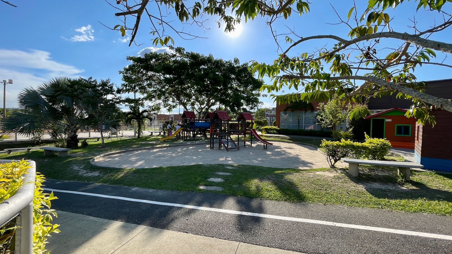 Cuenta con salón social, zona de juegos infantiles, vigilancia las 24 horas, casa para muñecas, sauna, turco, gimnasio, jacuzzi, piscina, cancha de tenis, skate park, cancha de futbol, cancha multiple, ciclo vía, senderos, jardín zen parques, parqueadero para visitantes, piscina, cancha de tenis, cancha multiple, cancha de fútbol, skate park, y jardín zen.