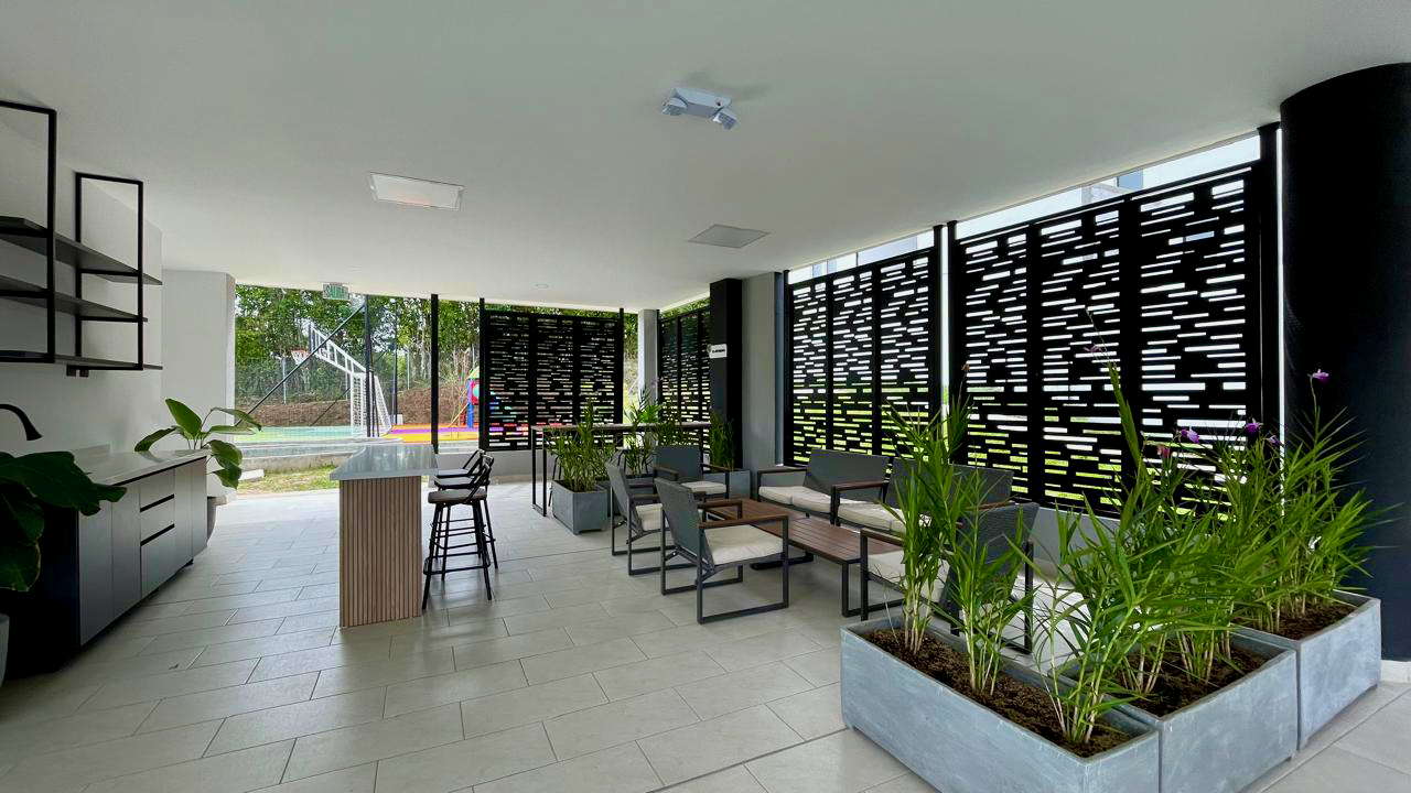La zona social esta conformada por salón social, cancha múltiple, gimnasio (Fitness center), parque de juegos actuáticos infantiles, senderos peatonales, zona Co-Working, lounge bar, salón de juegos, zona de mascotas, paneles solares en zonas comunes y planta eléctrica para todo el conjunto