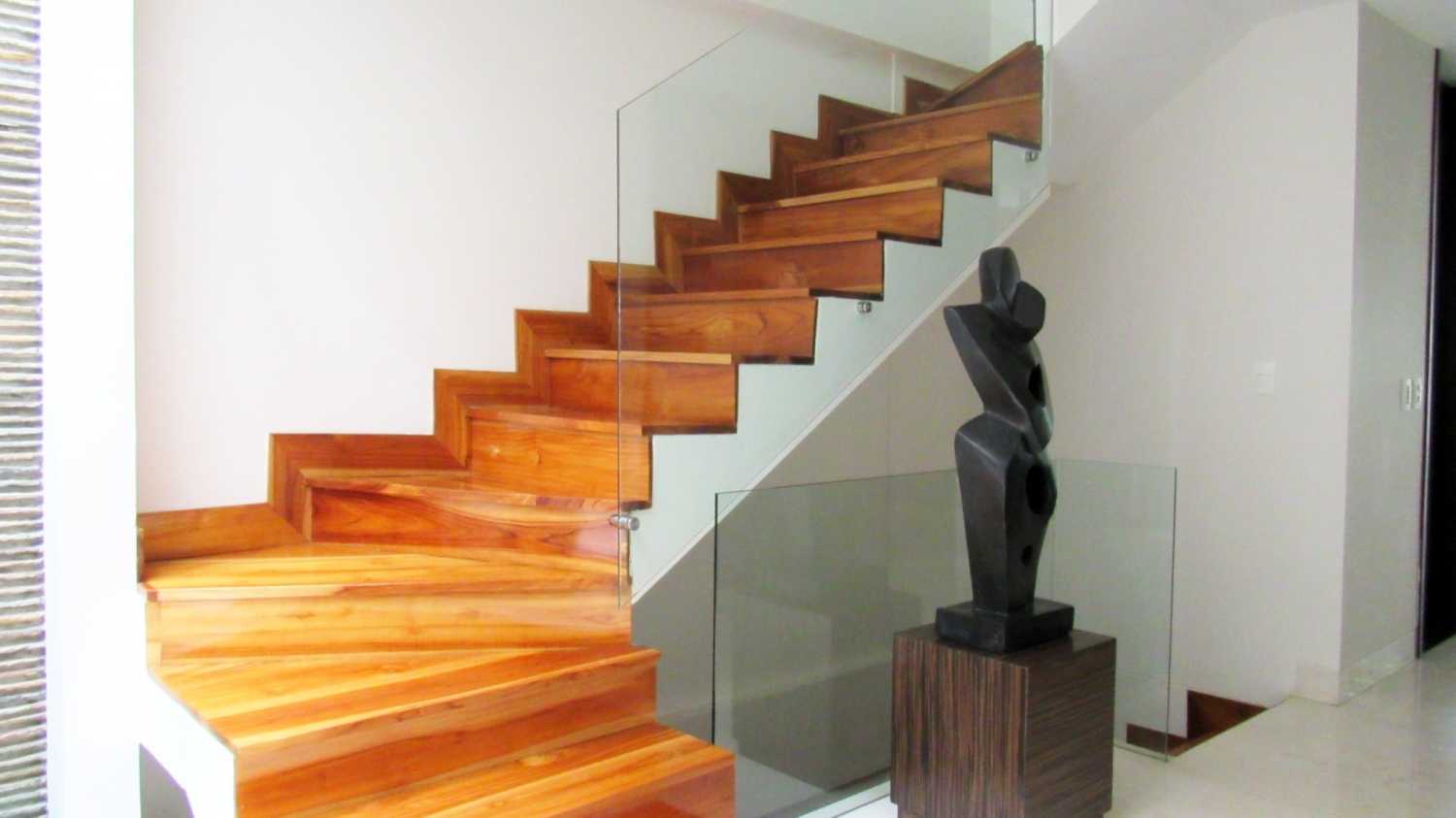 Escaleras en teca y vidrio templado
