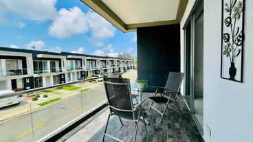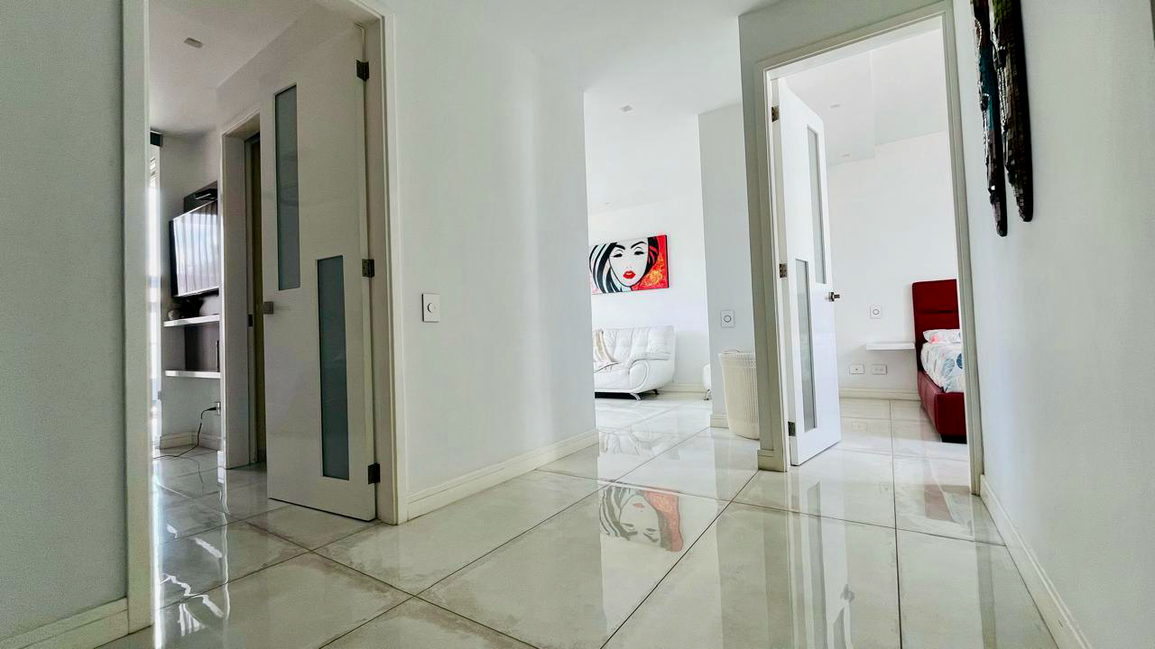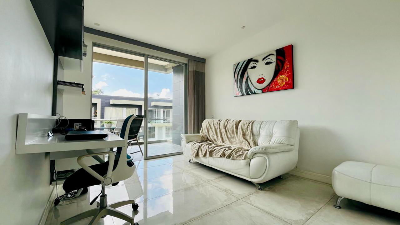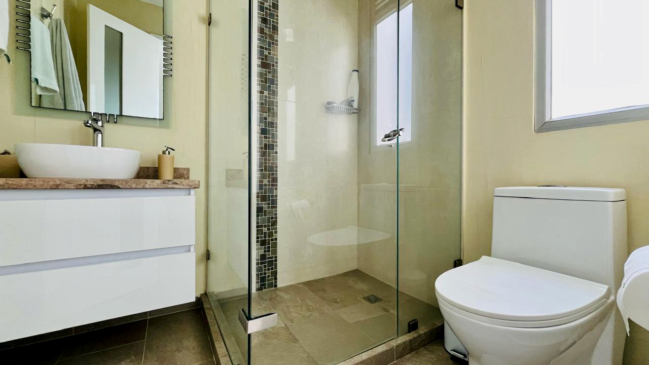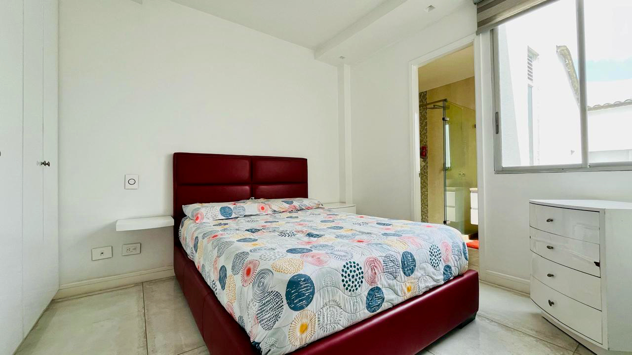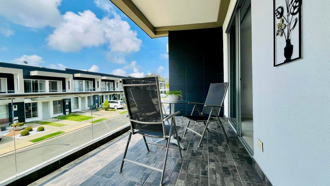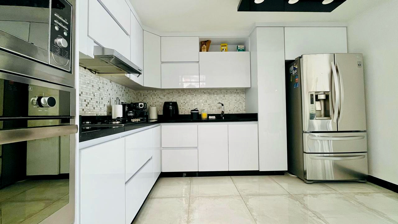 Cuenta con sala y comedor independientes, cocina integral moderna, patio de ropas techado, baño social, estudio, y tres habitaciones, todas con closet y baño privado. Además, dispone de una terraza ideal para disfrutar al aire libre y parqueadero cubierto para dos vehículos.